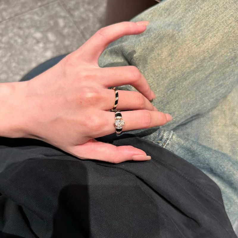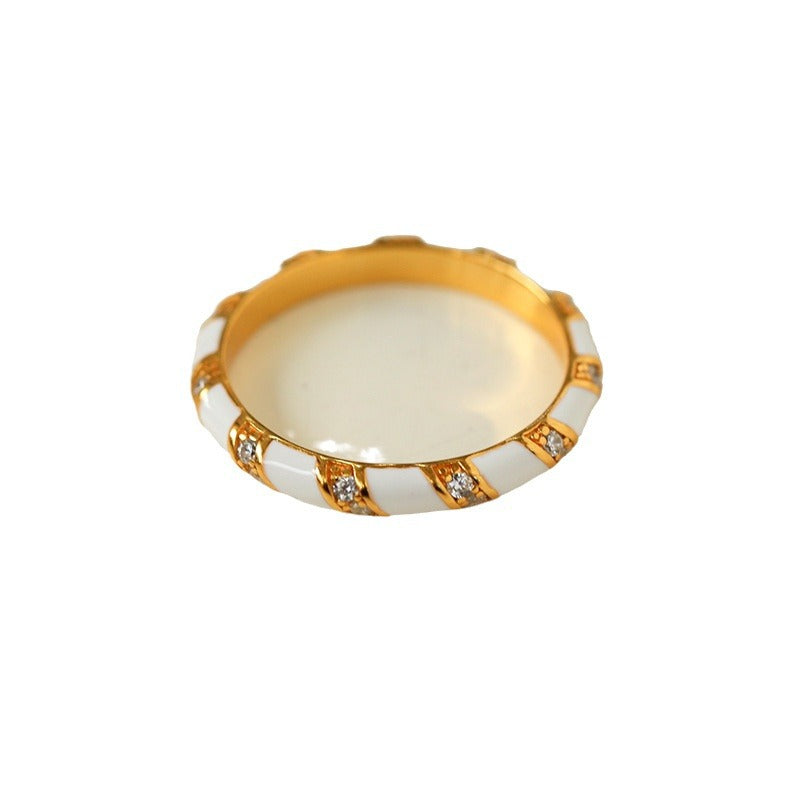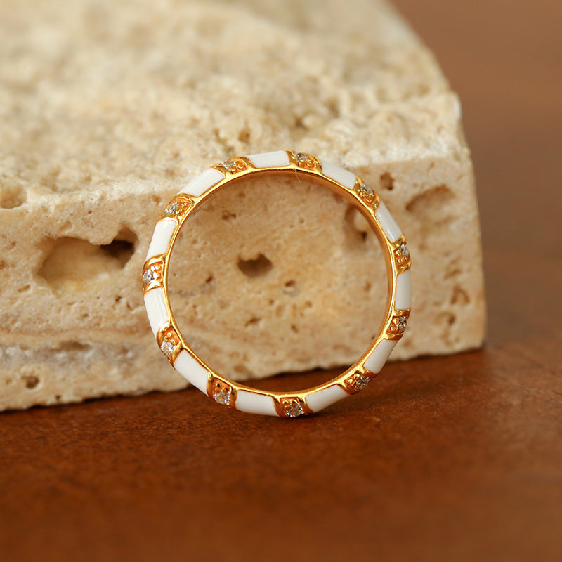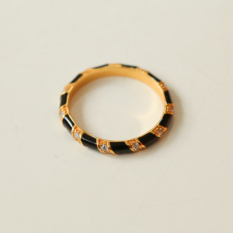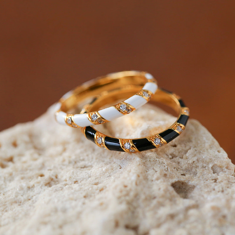 Wholesale 925 silver black and white enamel striped ring Classic stacked zircon narrow ring