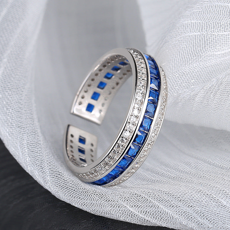 Wholesale S925 Sterling Silver Micro-inlaid Blue Diamond Ring