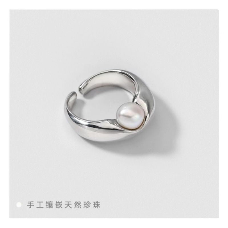 Wholesale S925 sterling silver pearl ring natural baroque freshwater beads open ring