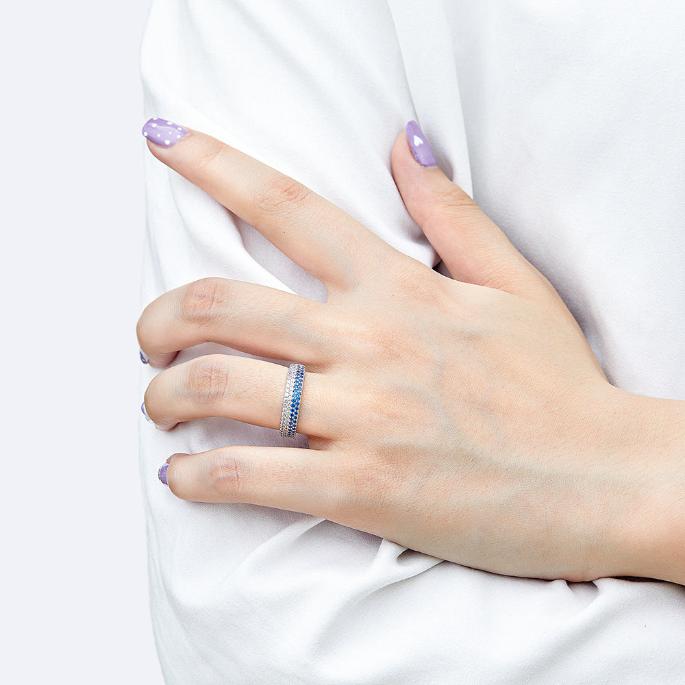 Wholesale s925 sterling silver ring blue crystal white zircon Fashion Row Diamond ring