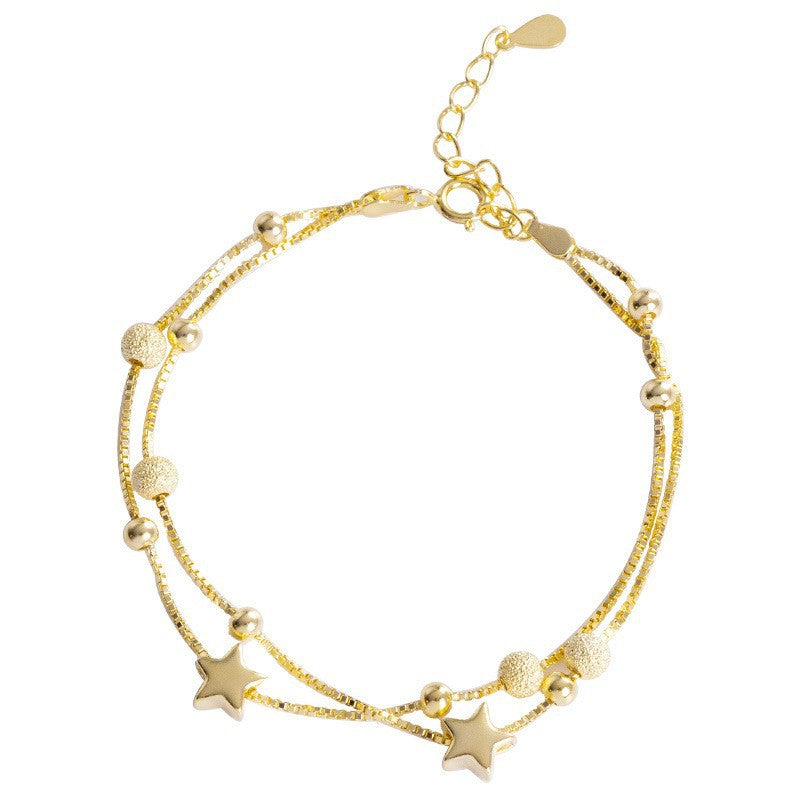 Wholesale S925 Sterling Silver Star Bracelet Double-layer Frosted Beads Bracelet