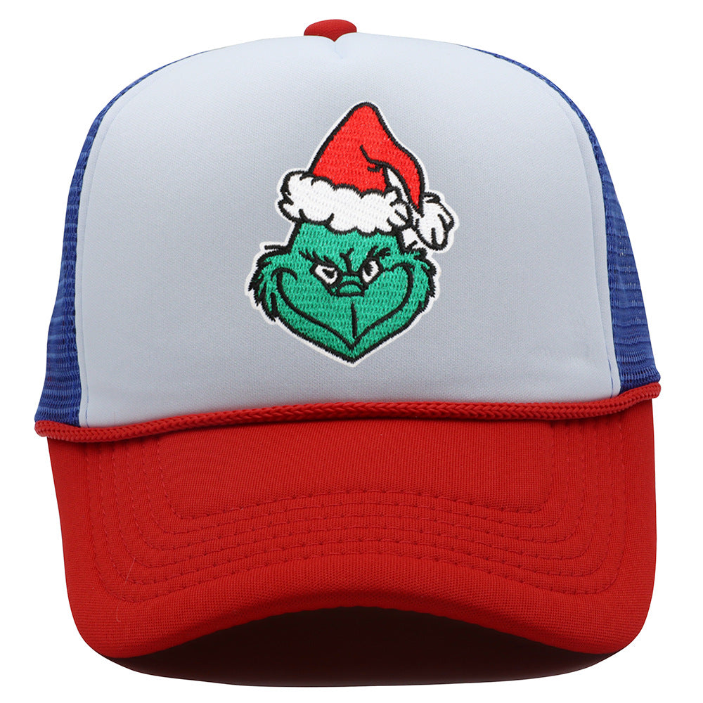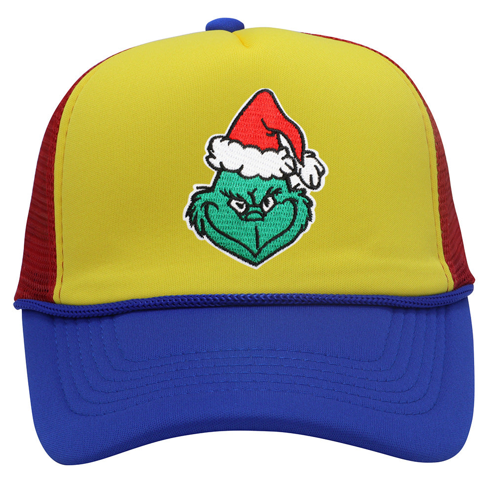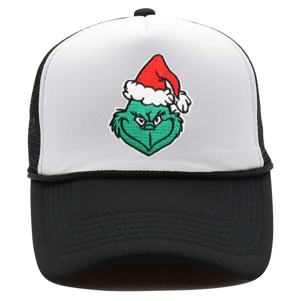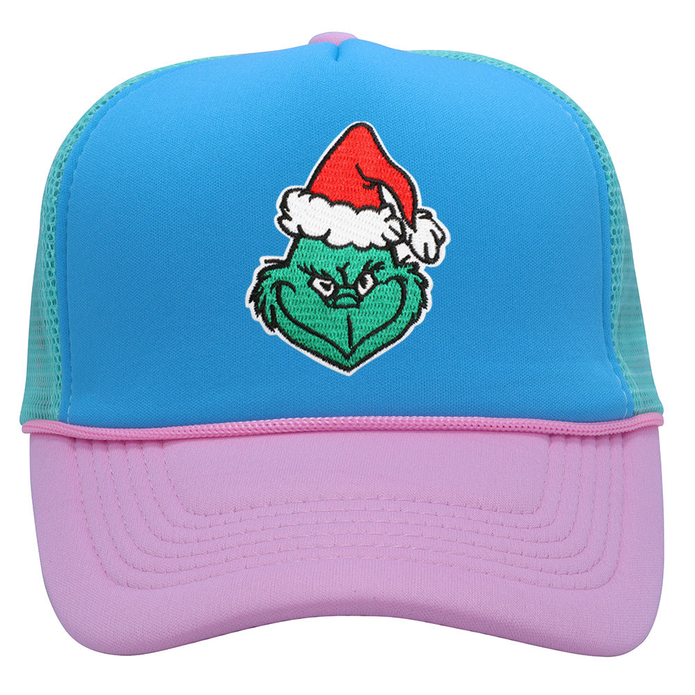 Wholesale Christmas green hair monster embroidered label grid baseball cap