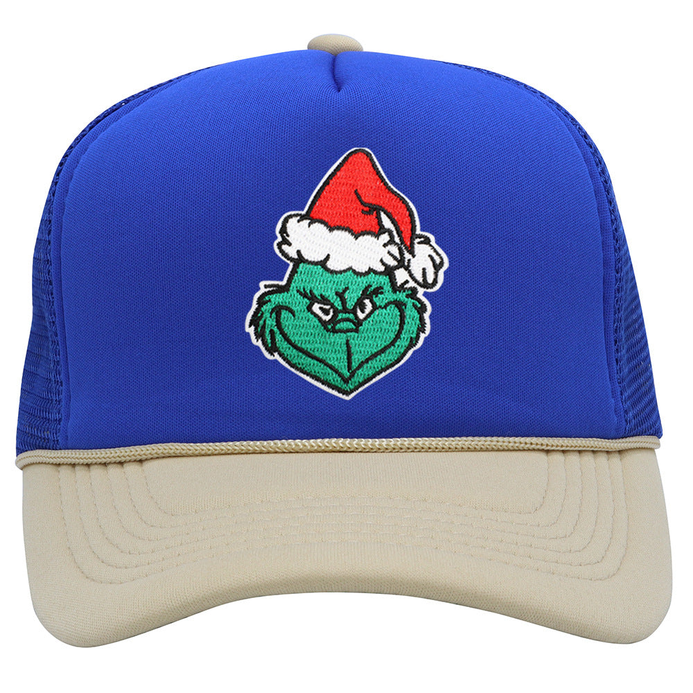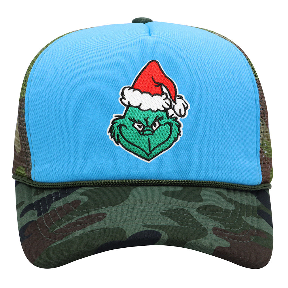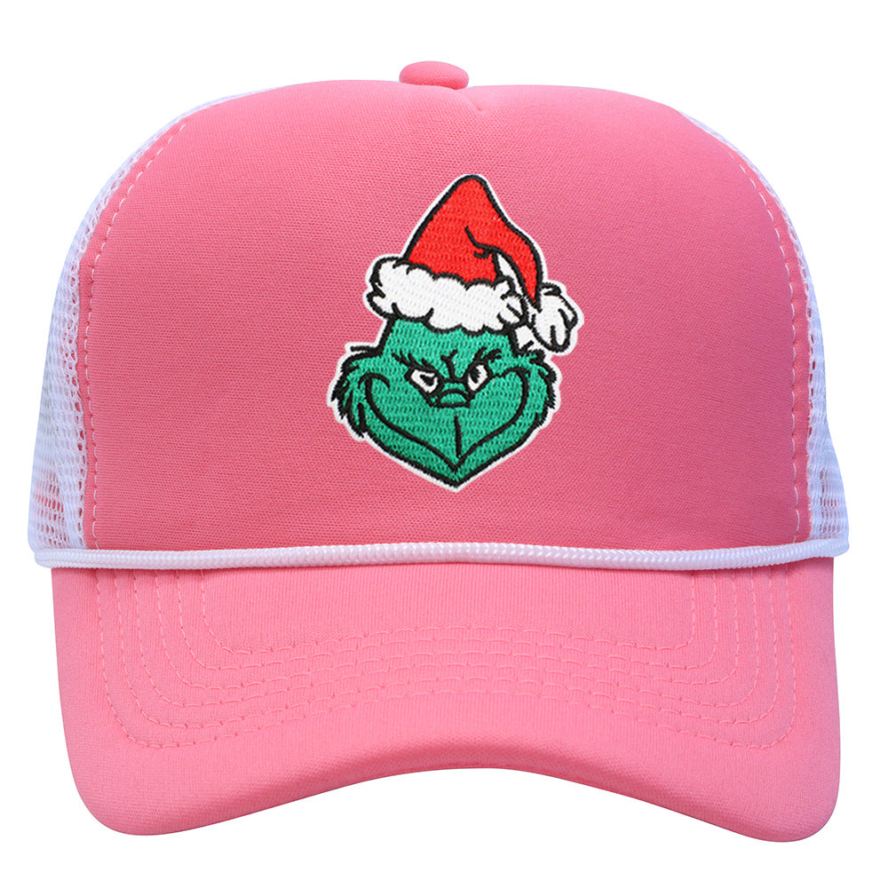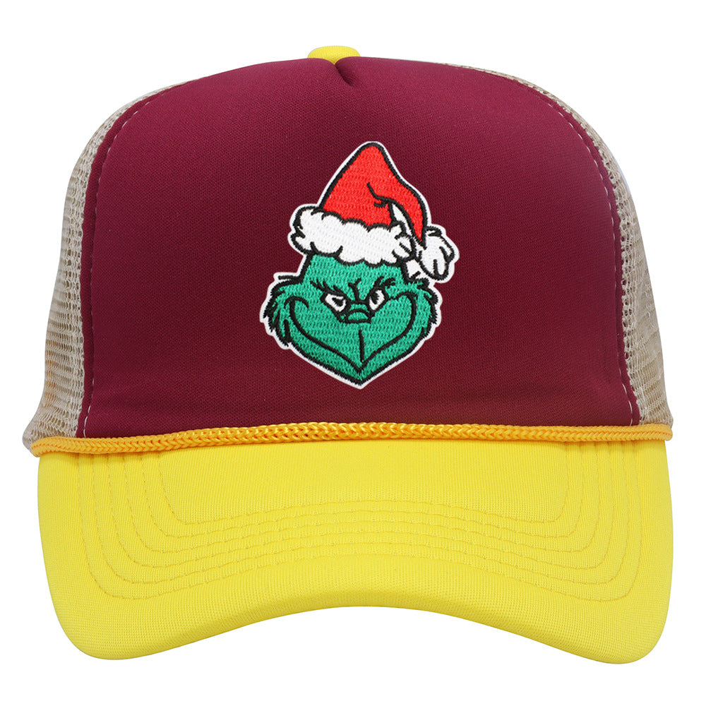 Wholesale Christmas green hair monster embroidered label grid baseball cap