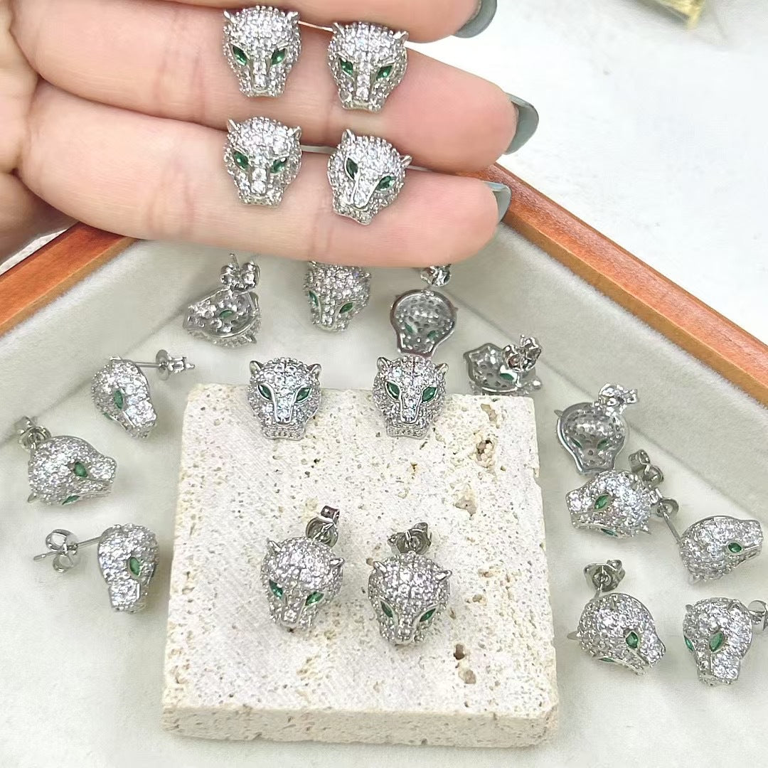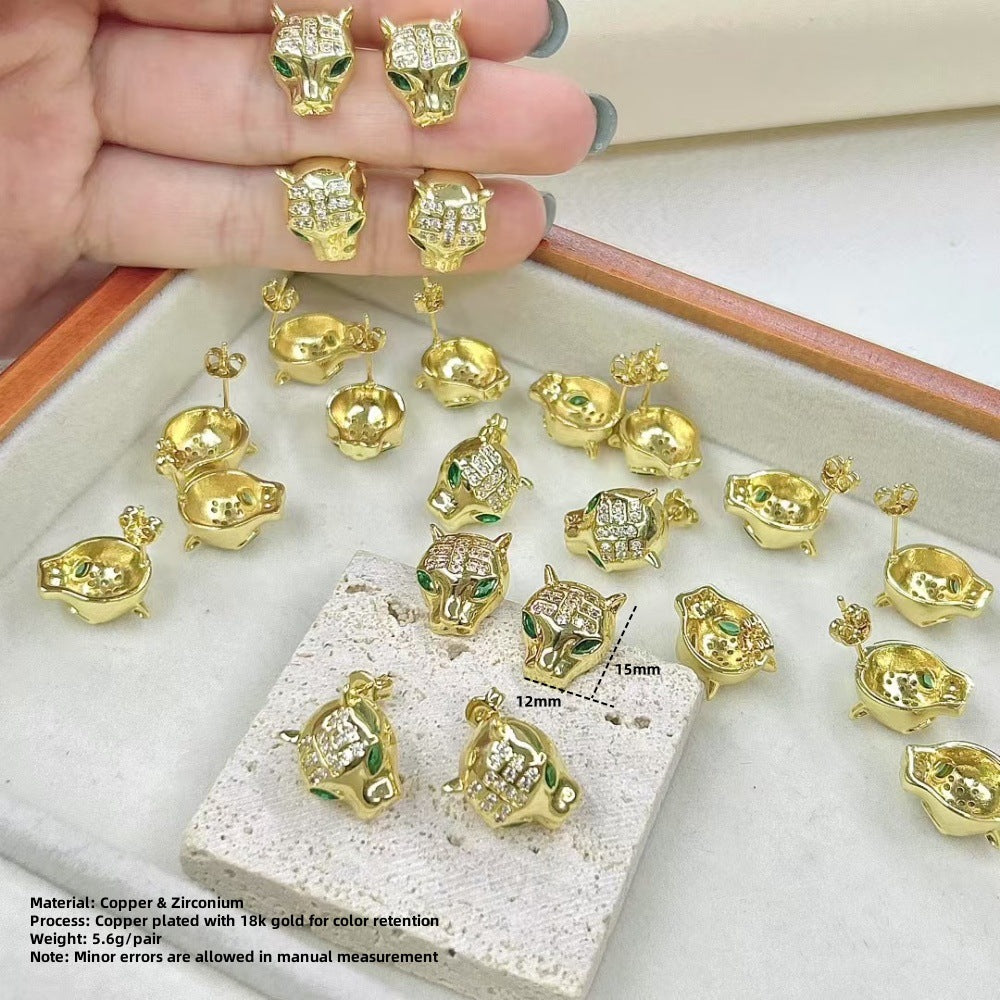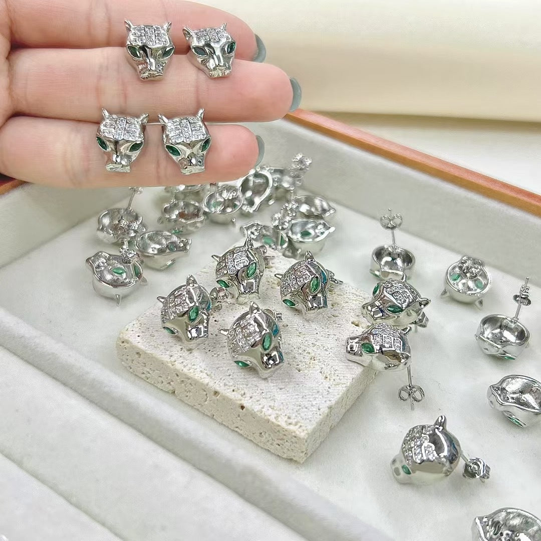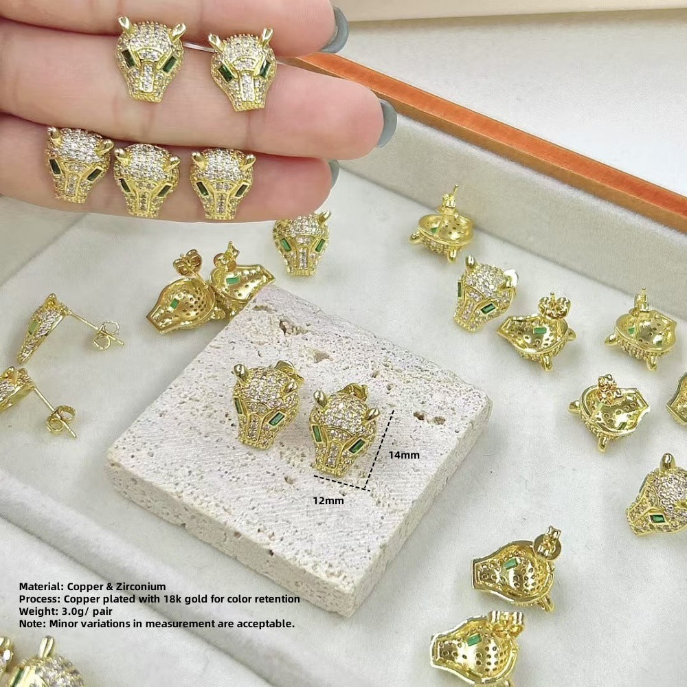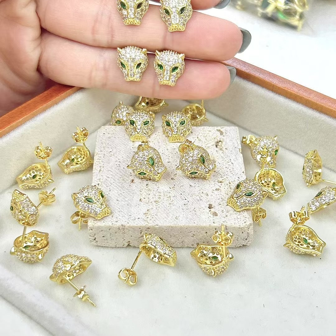 Wholesale Animal leopard head zircon earrings