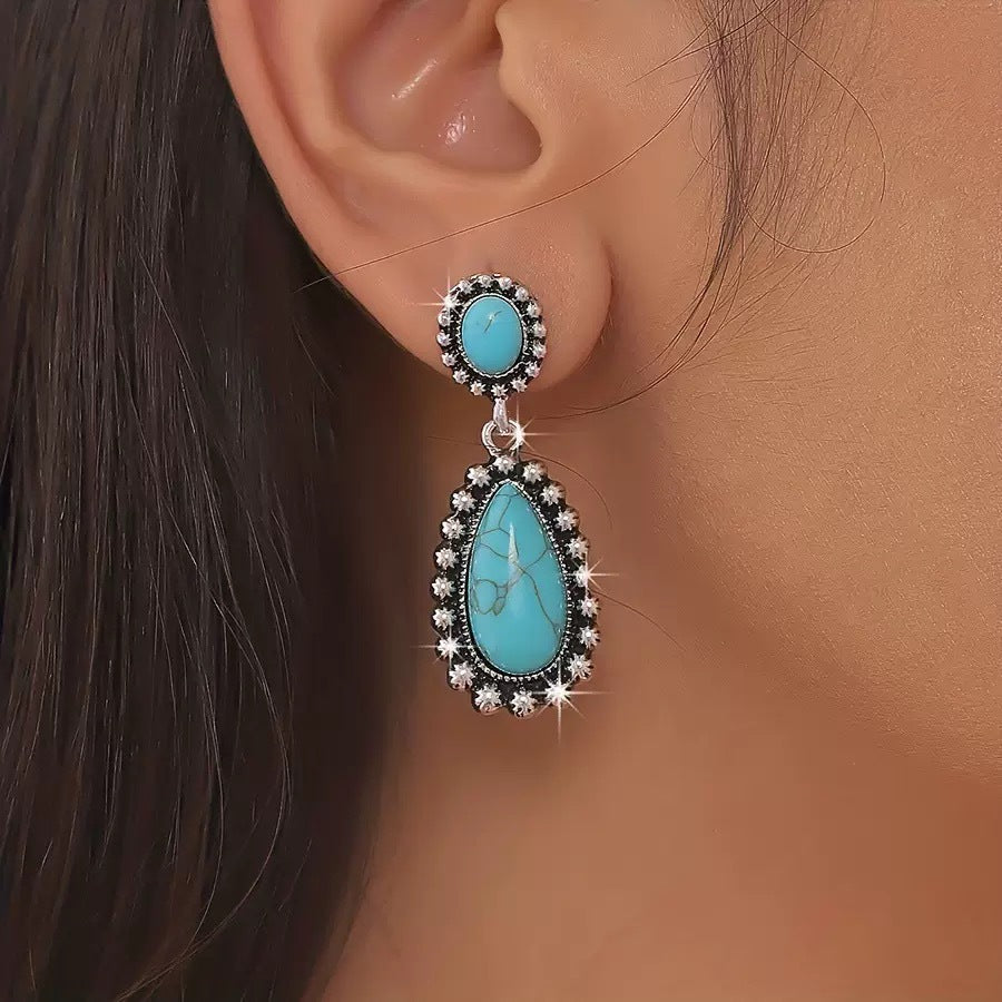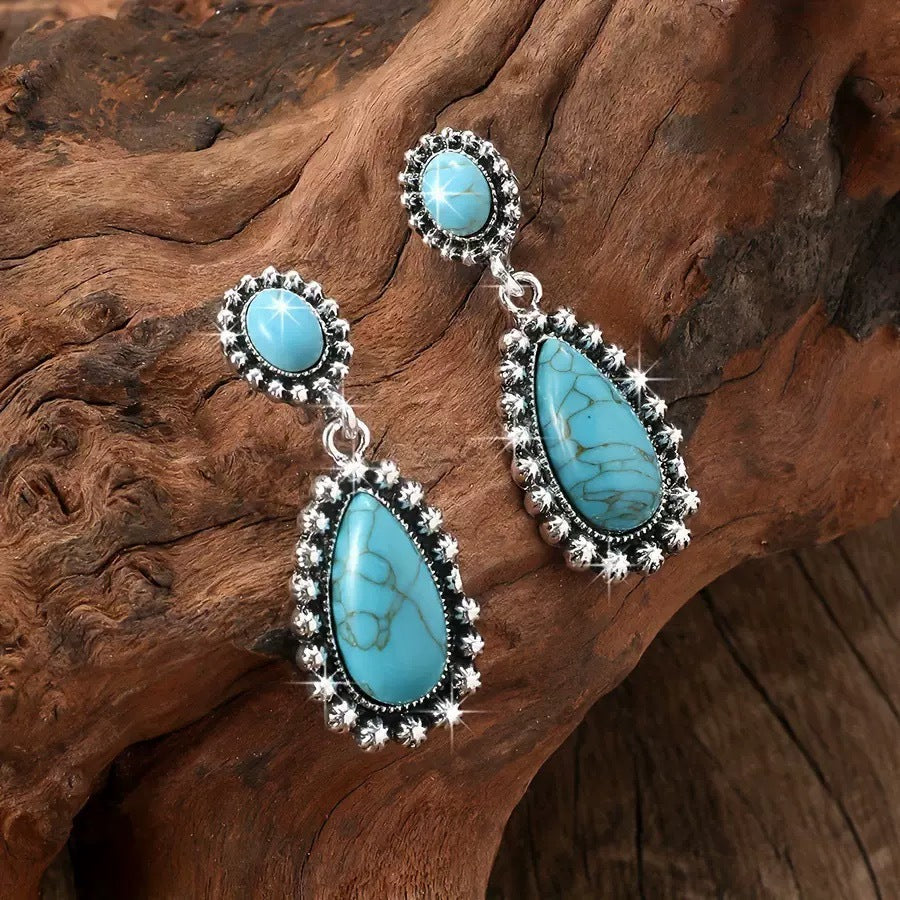 Wholesale artistic retro bohemian style turquoise teardrop-shaped earrings