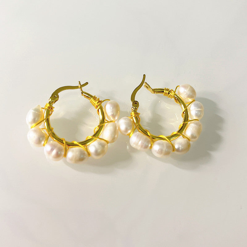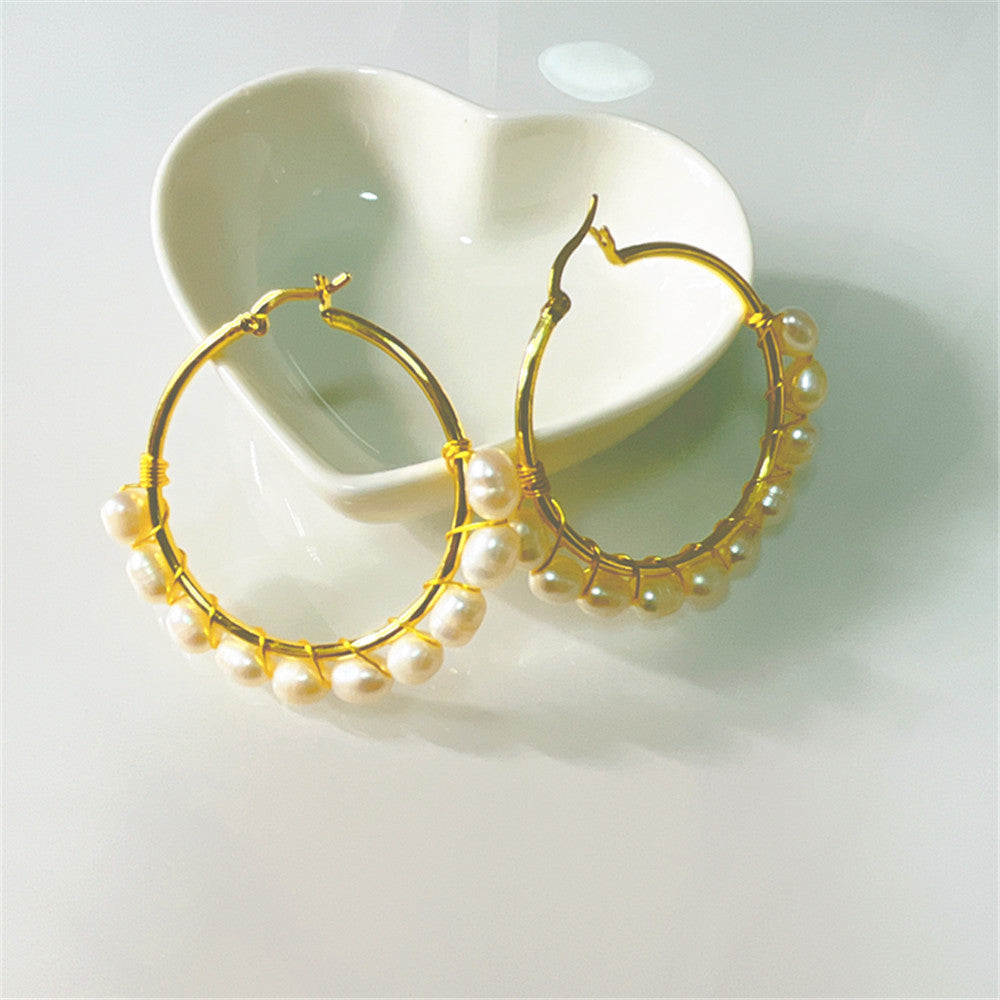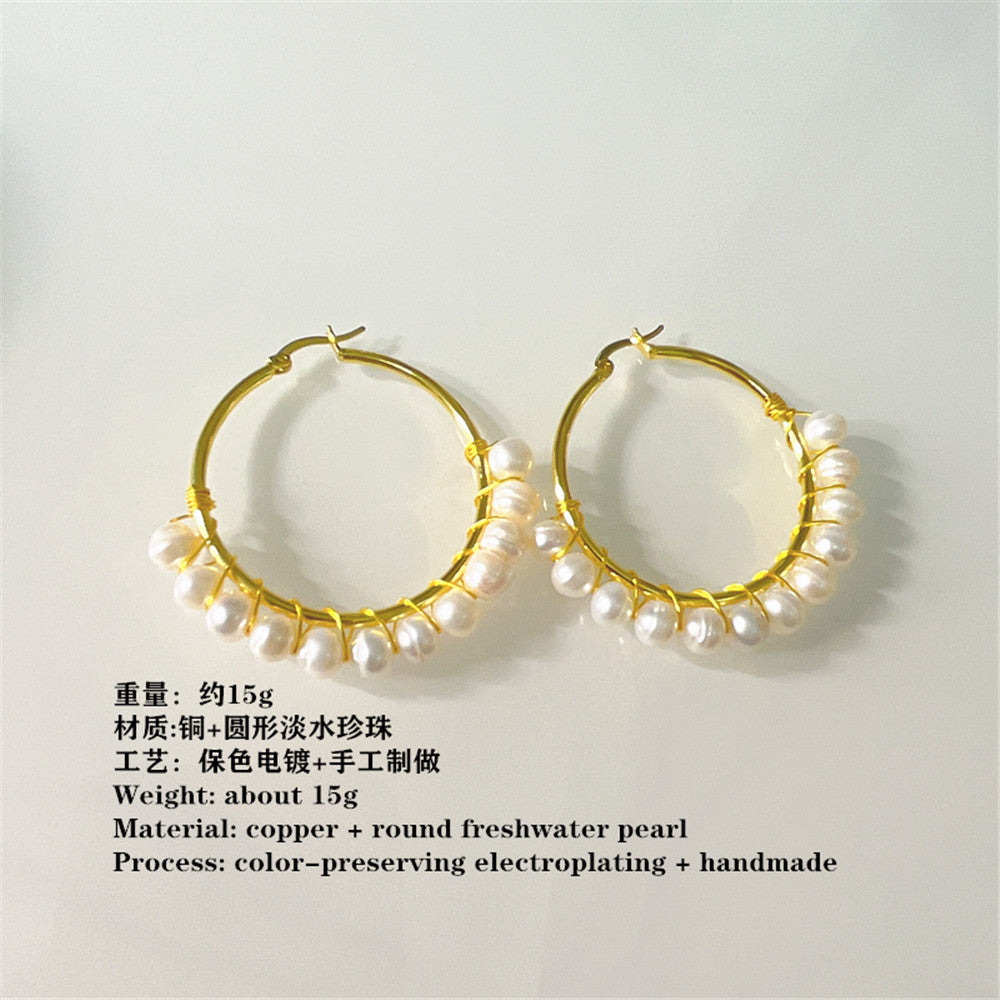 Wholesale Bohemian Big Small size freshwater pearl earrings