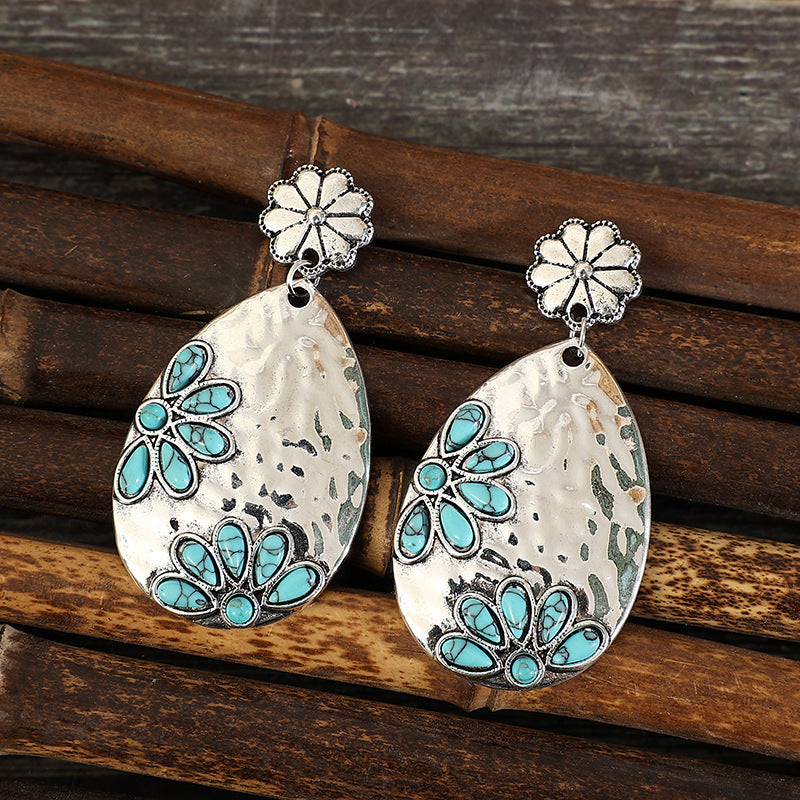 Wholesale Bohemian style water drop alloy inlaid turquoise earrings