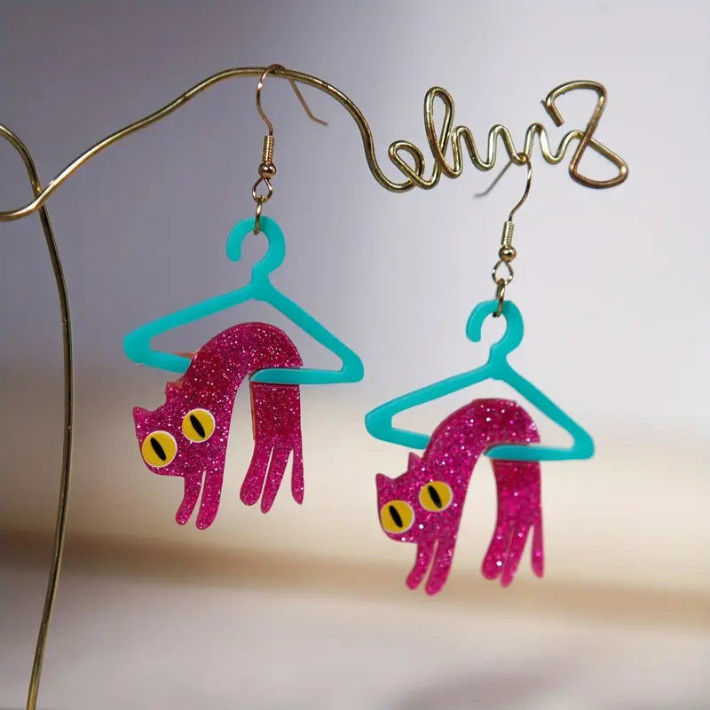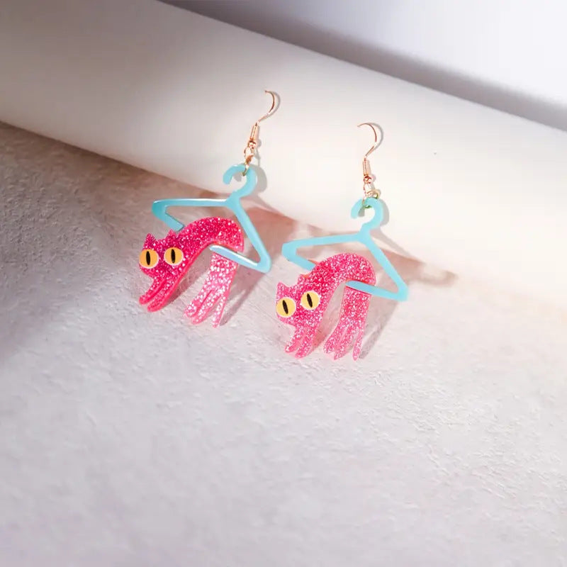 Wholesale Cartoon pink cat with glitter earrings