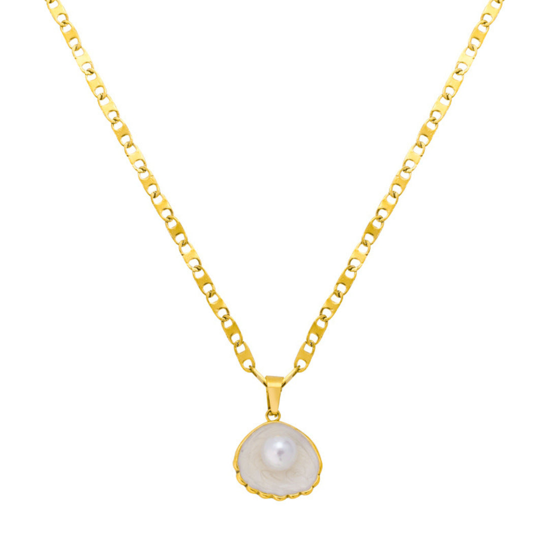 Wholesale Titanium Steel Small Flower Ocean Style Shell Starfish Pearl Necklace