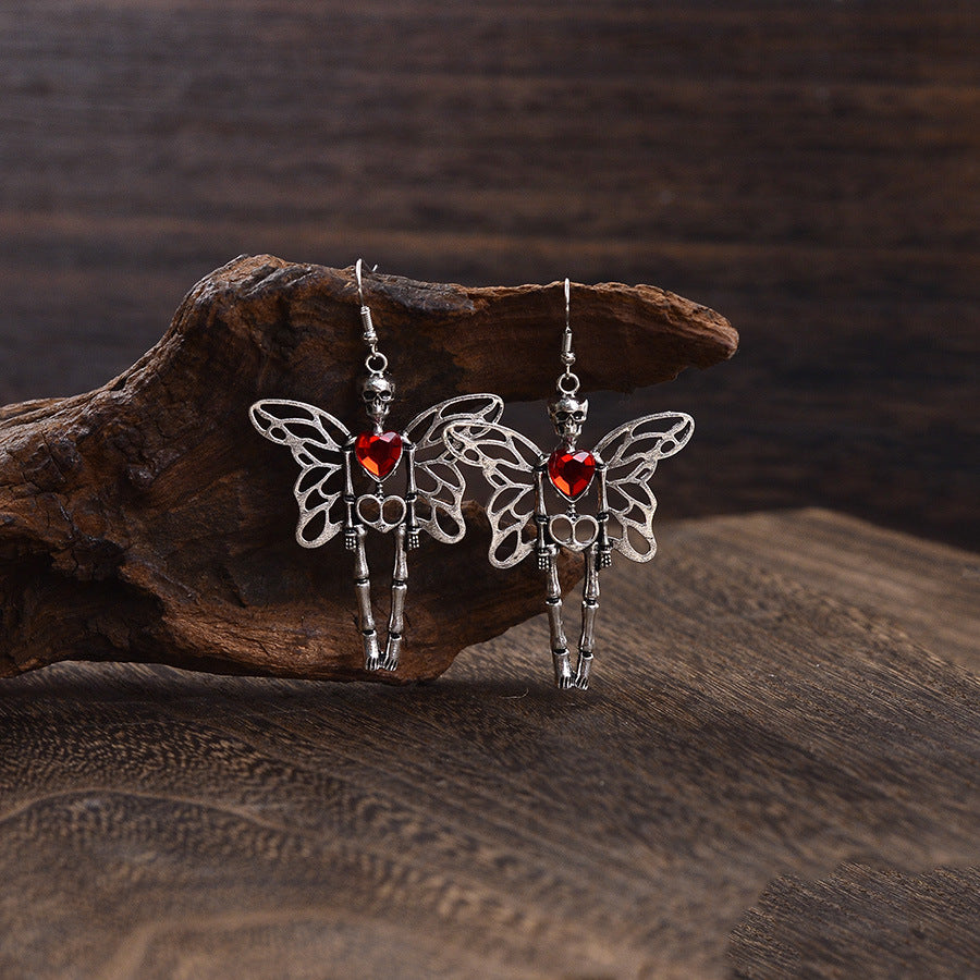 Wholesale Exaggerated Skull Wings Ruby Earrings