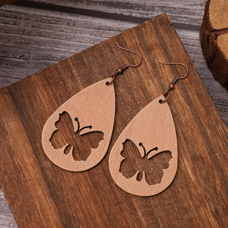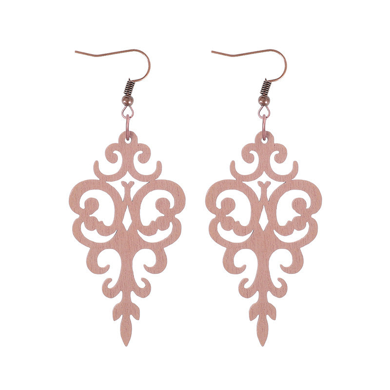 Wholesale Hollow Earrings Mesh Wood Geometric Pattern Earrings