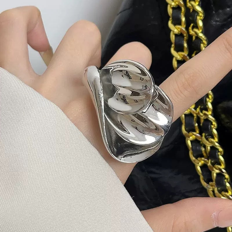 - Silver double ring multi-layer petal ring