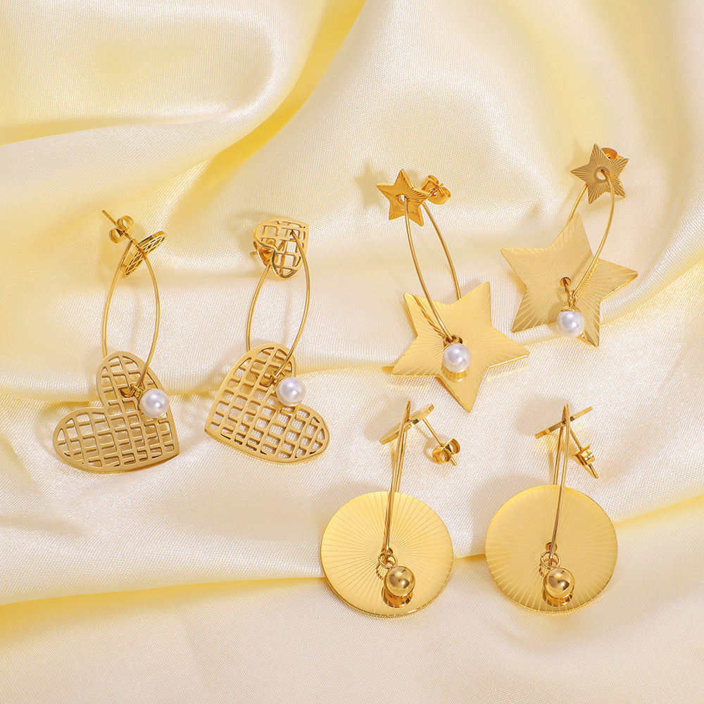 Wholesale Love-shaped Round Five-pointed Star Earrings Double-layer Hollow Design Sense Stainless Steel Earrings