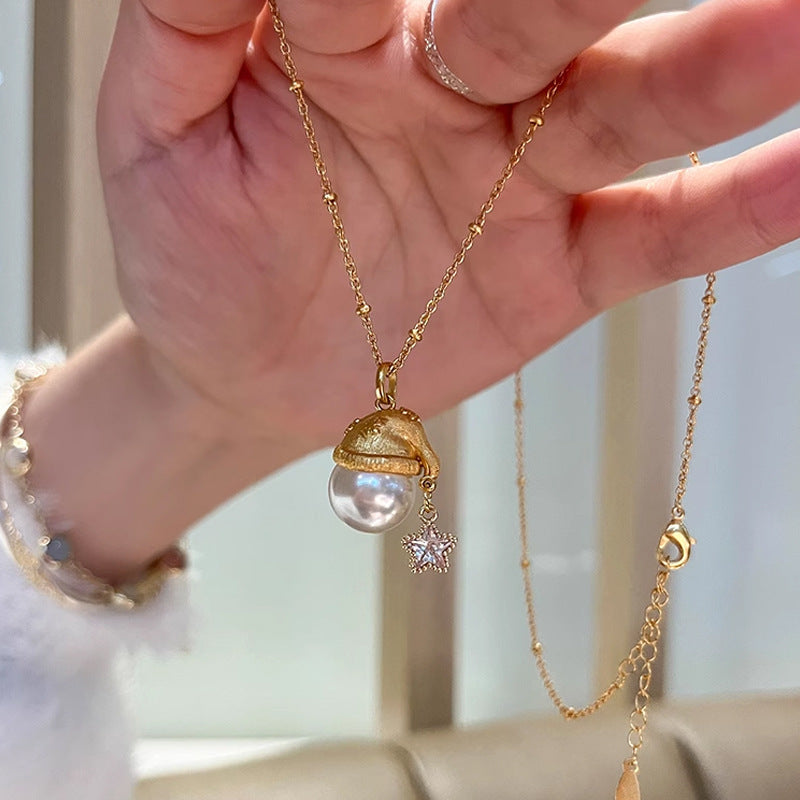 - Christmas hat star necklace