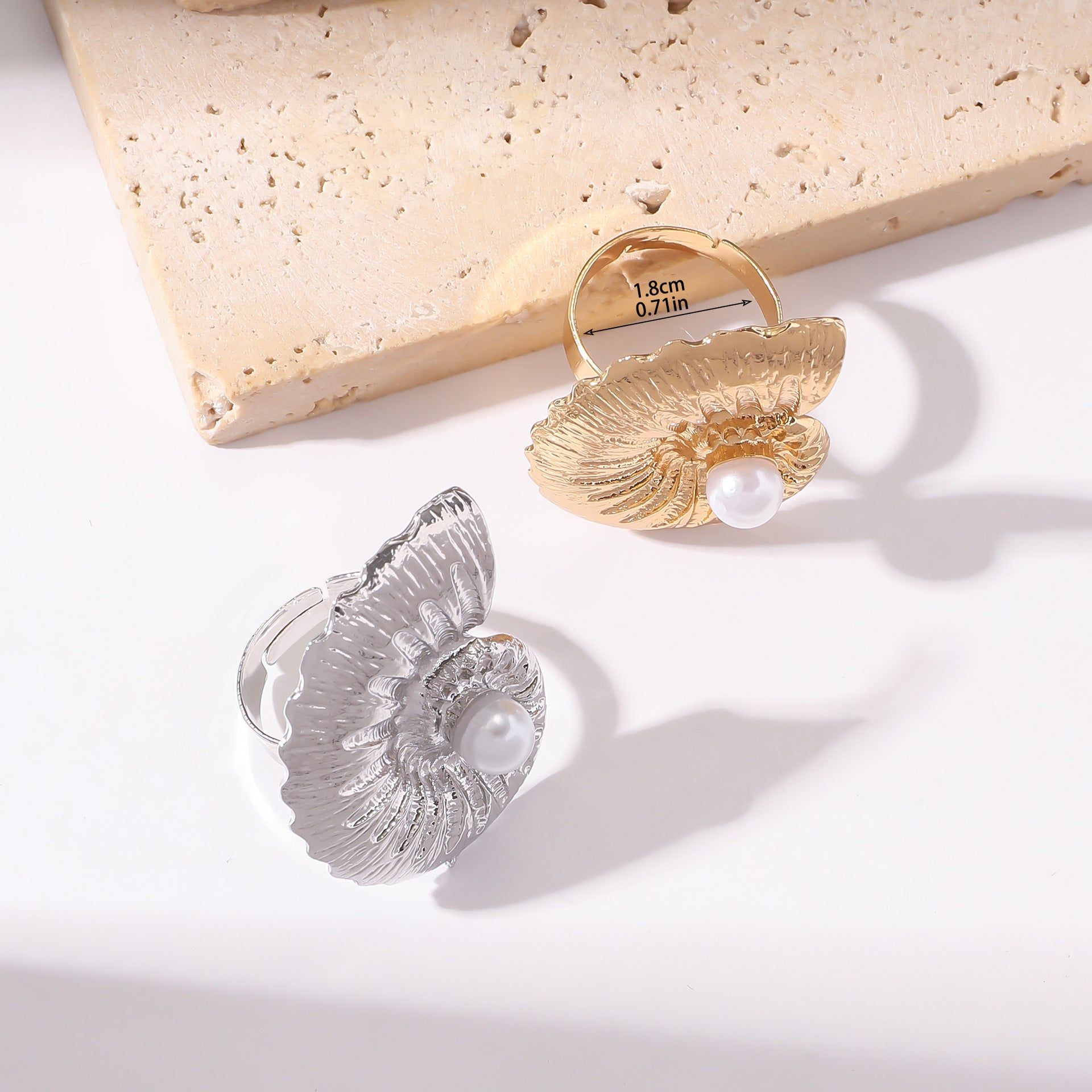 Wholesale Shell Alloy Imitation Pearl Adjustable Ring