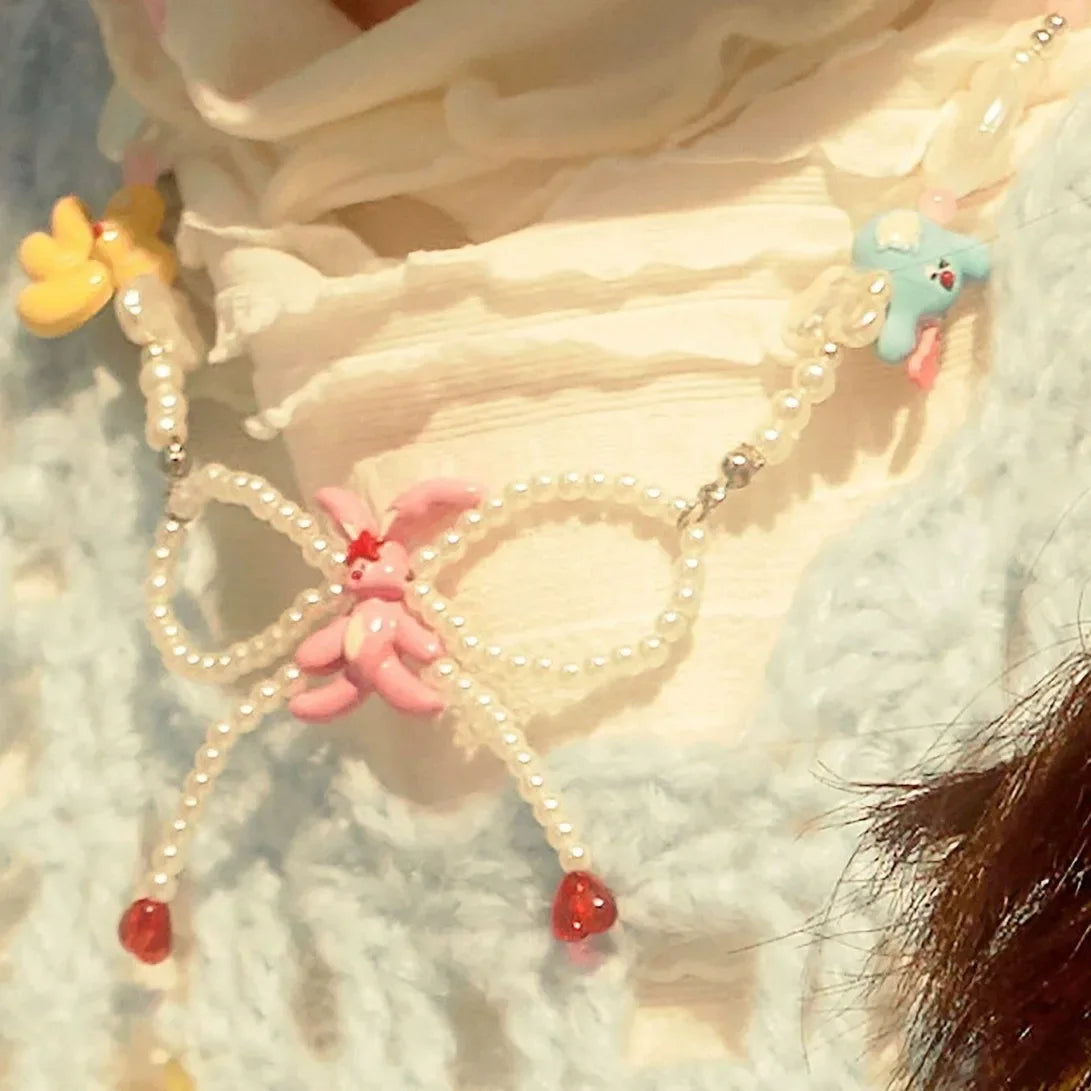 Wholesale Beaded Bow Stainless Steel Girls Adjustable Necklace