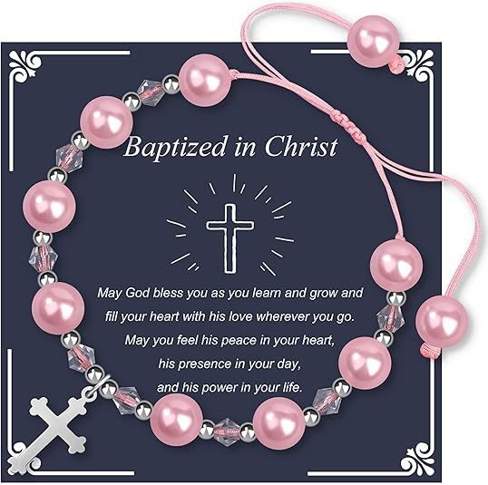 - Card + pink bead cross bracelet