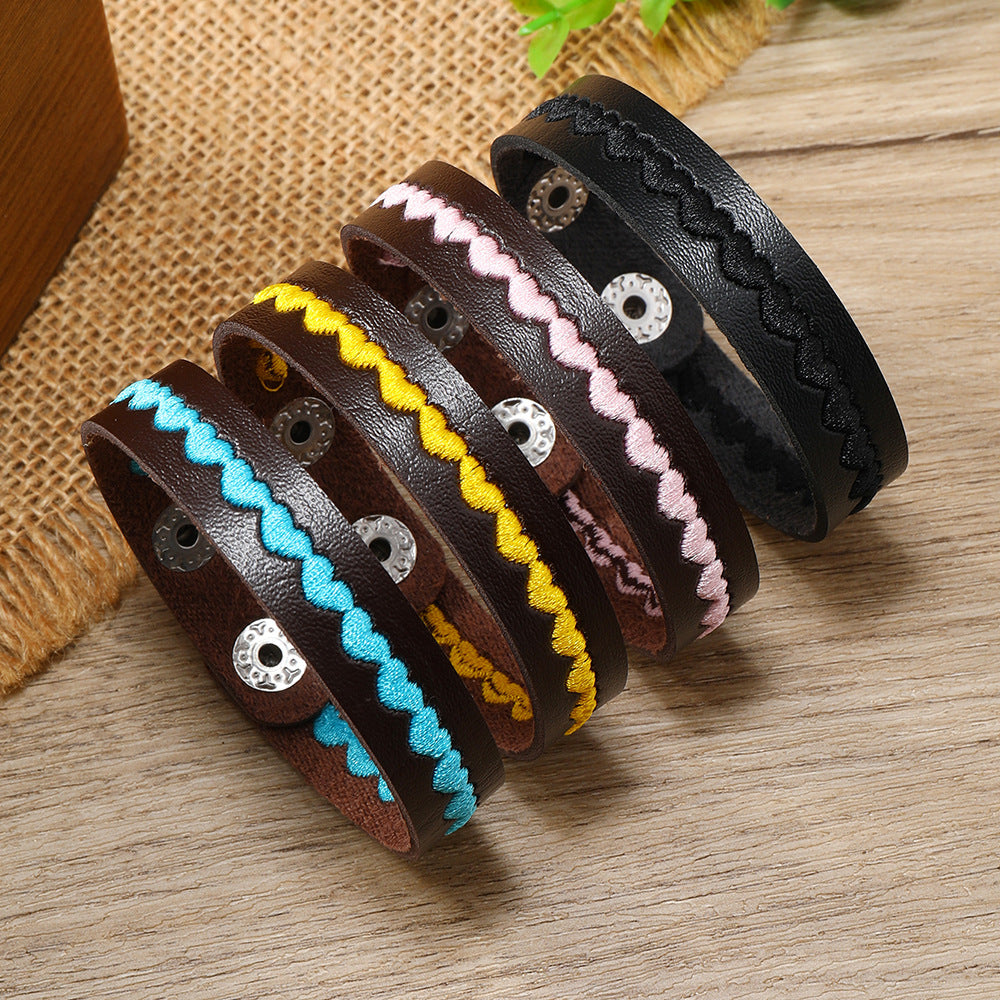 Wholesale 3PCS Leather Heart Embroidered Bracelet