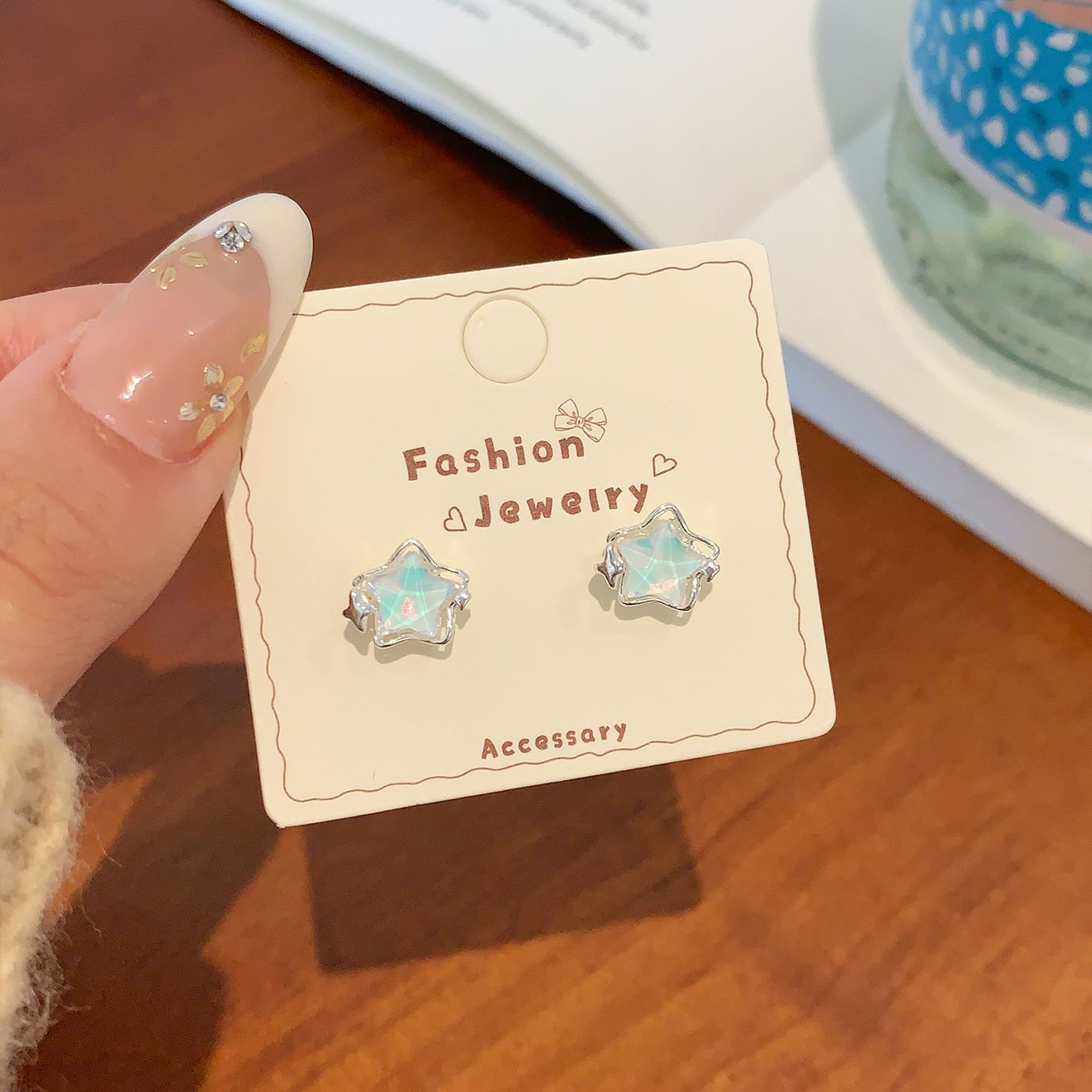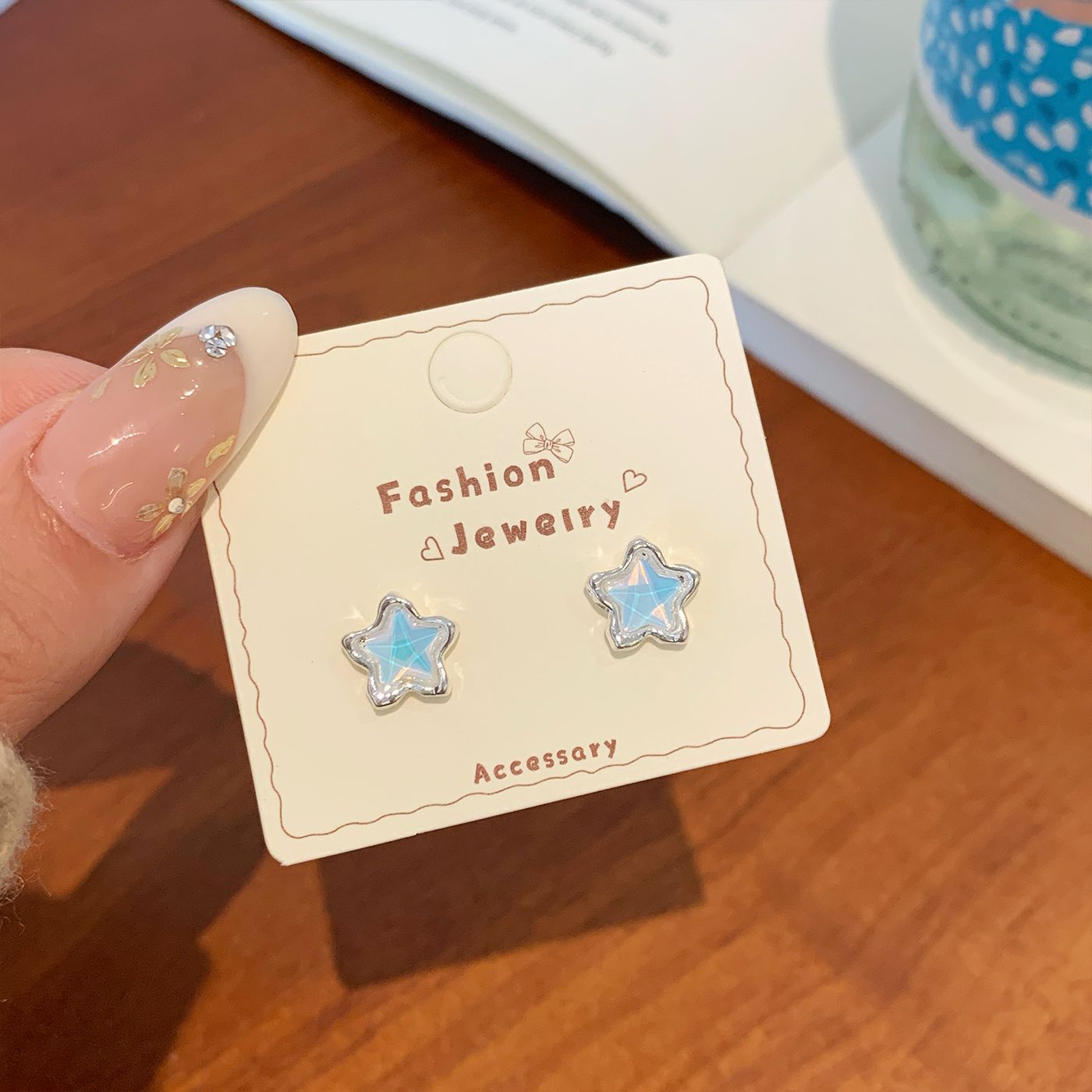 Wholesale Bear Bow Colorful Star Earrings Silver Needle Versatile Earrings