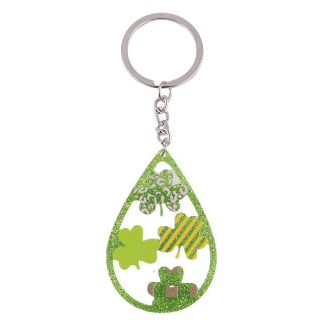 Wholesale St.Patrick Fine Flash Clover Acrylic Creative Hollow Water Drop Hanging Jewelry Keychain