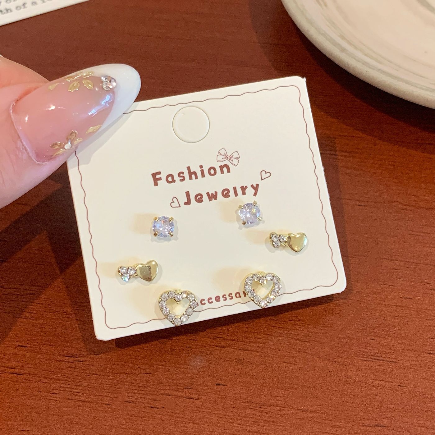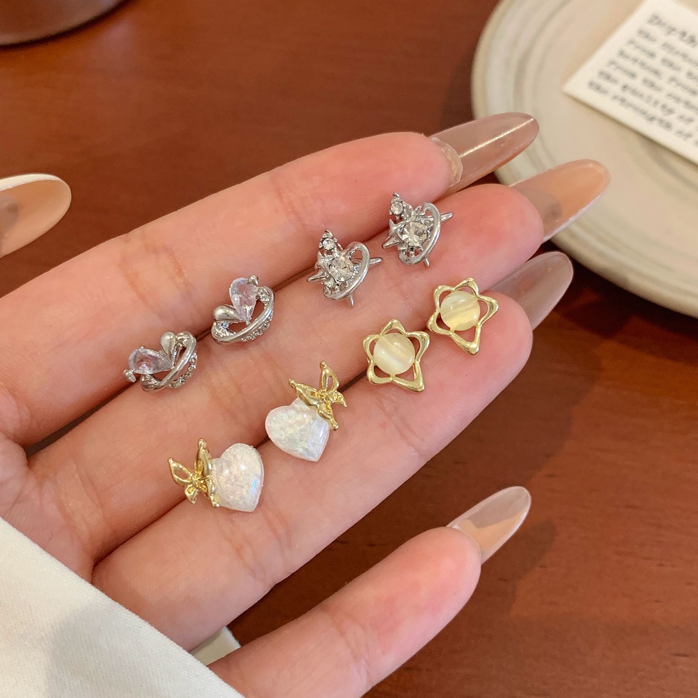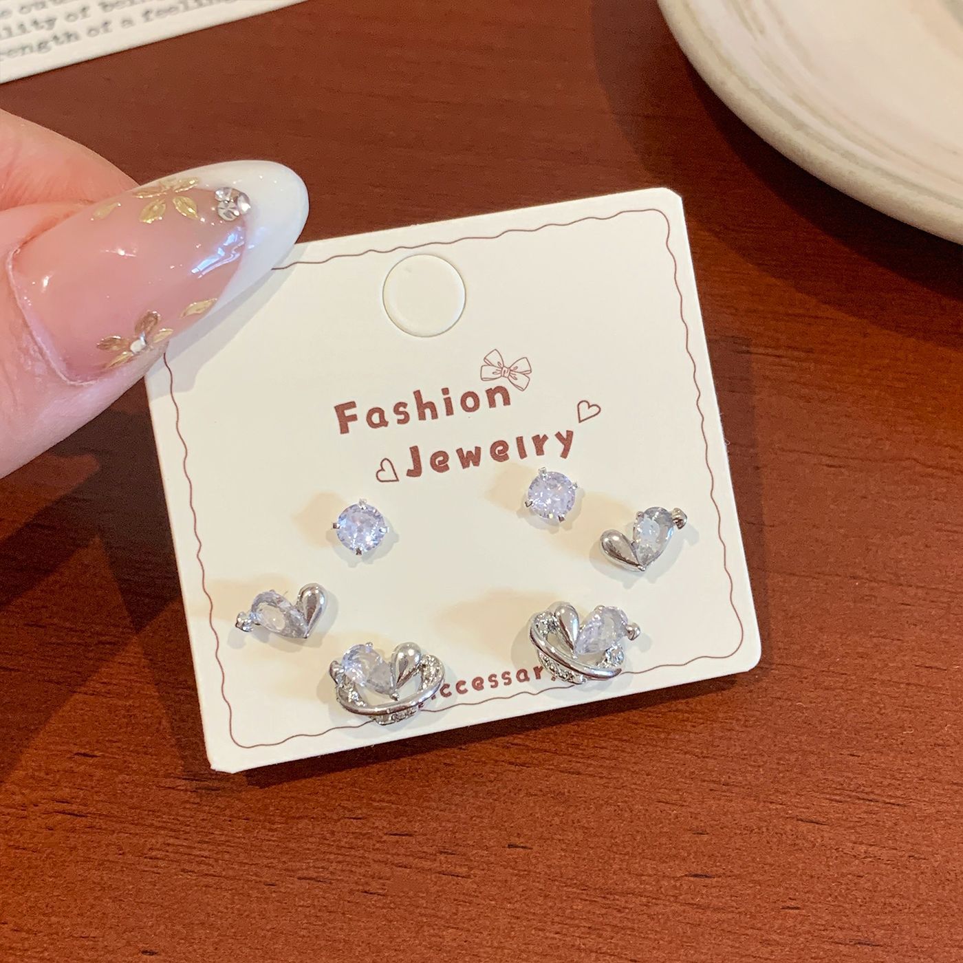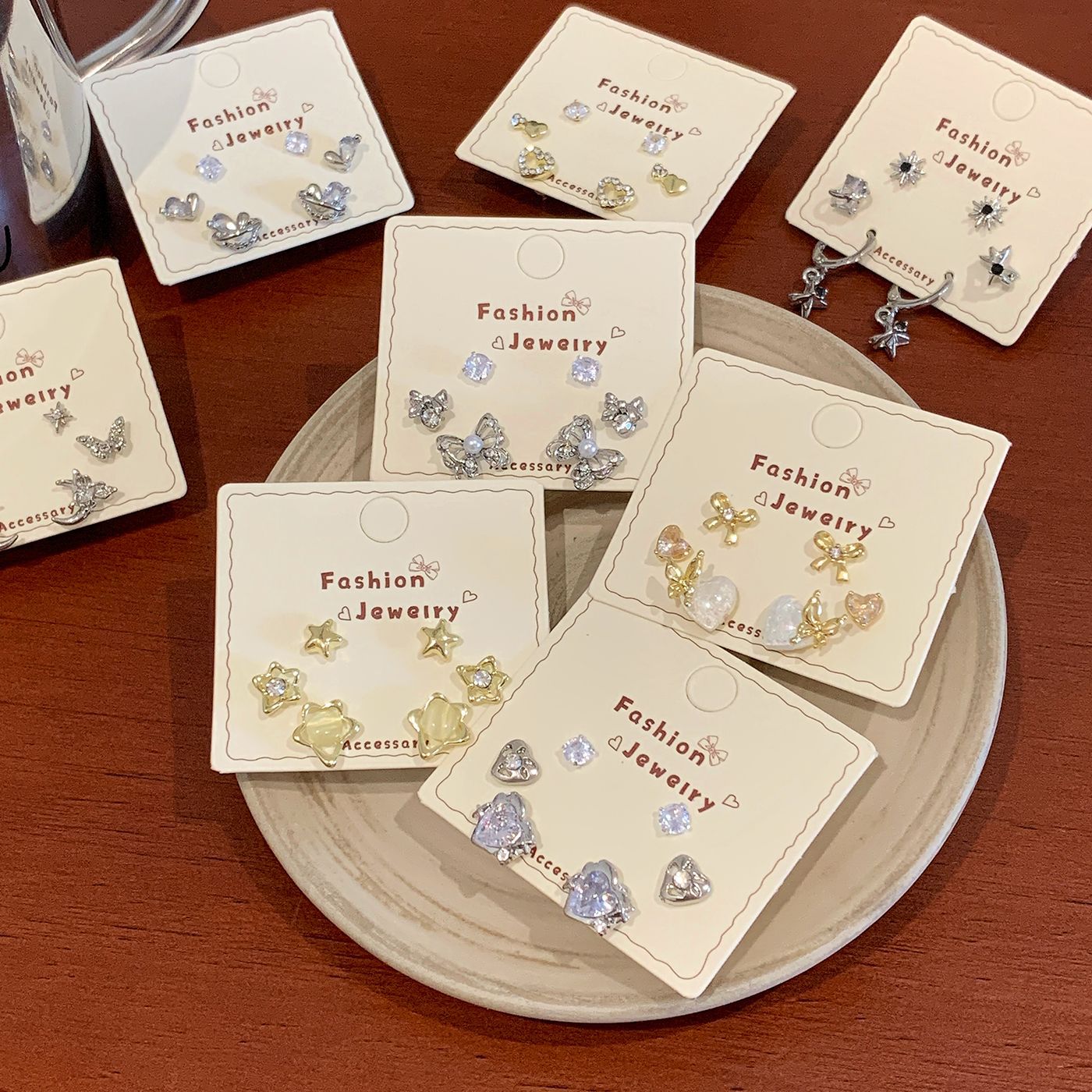 Wholesale Super flash zircon exquisite five-pointed star heart earring set silver needle Earrings