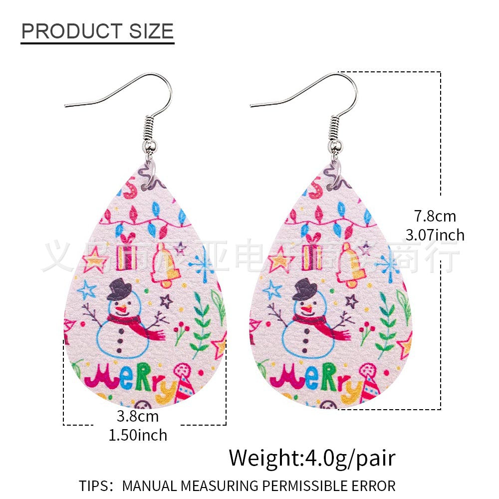 Wholesale Christmas earrings Christmas dwarfs midget double-sided print PU leather earrings