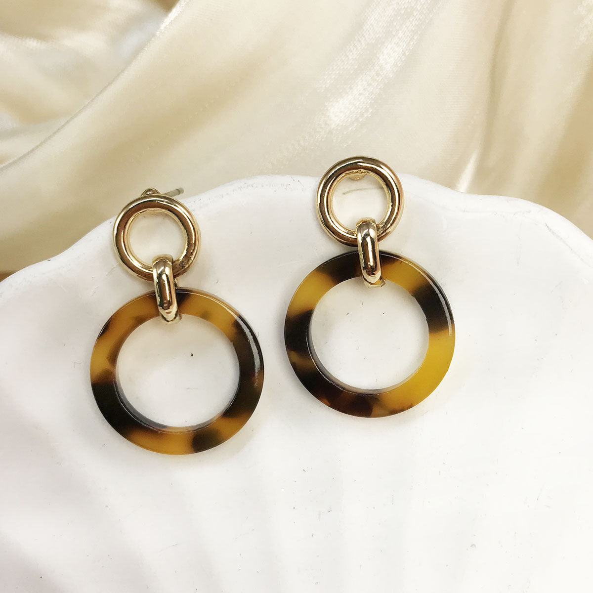 Wholesale Punk Style Metal Texture Exaggerated Leopard Print Resin Hoop Earrings