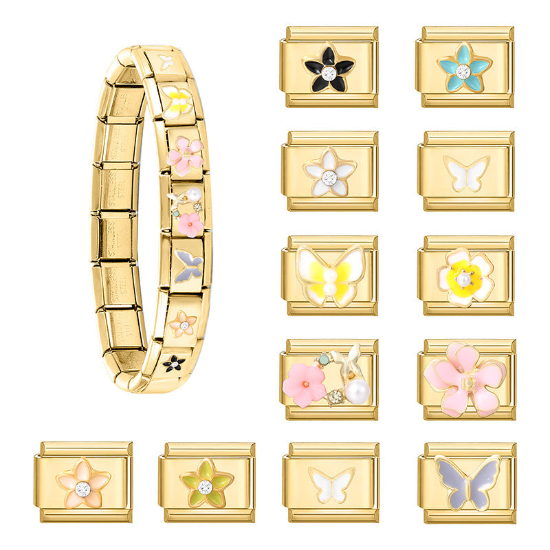 Wholesale 9mm Italian Charm Starter Bracelets DIY Gold Flower Stainless Steel Composable Bracelet