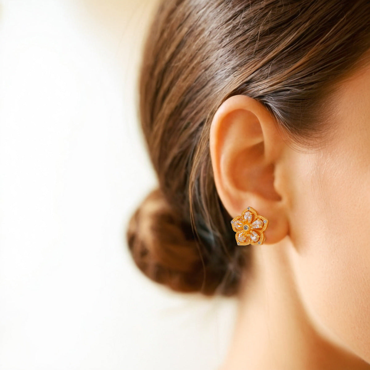 Wholesale Stainless Steel All-match Earrings Diamond Hollow Flowers Jewelry