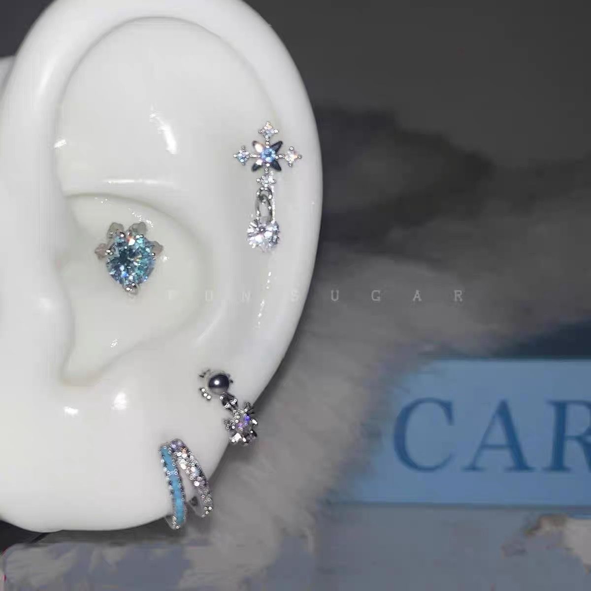- Ek085 one zircon blue earring