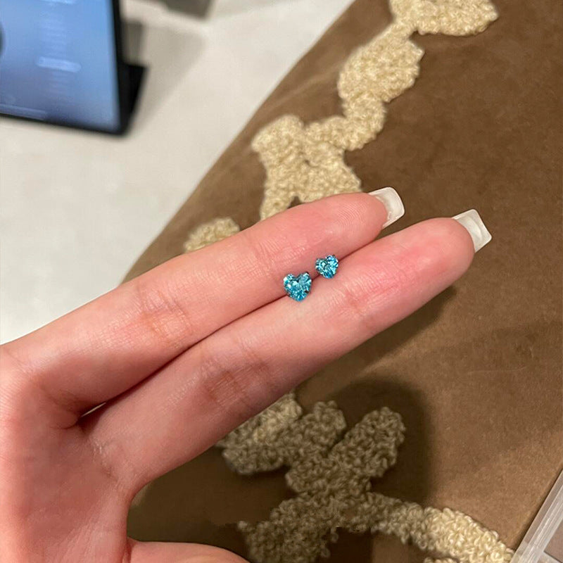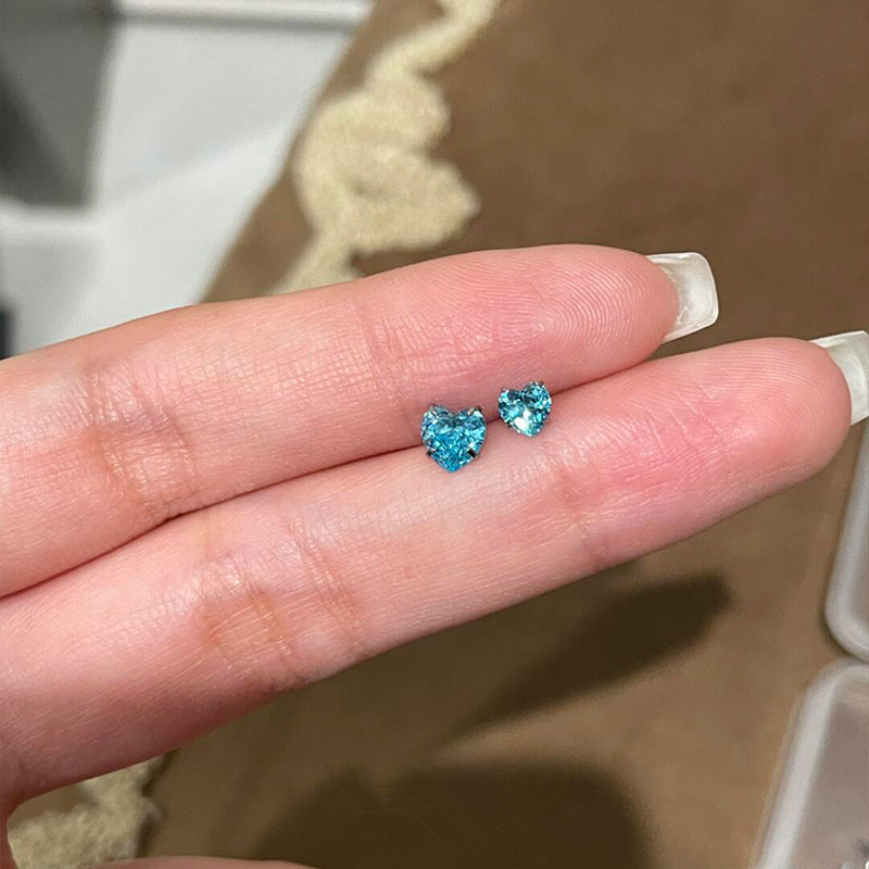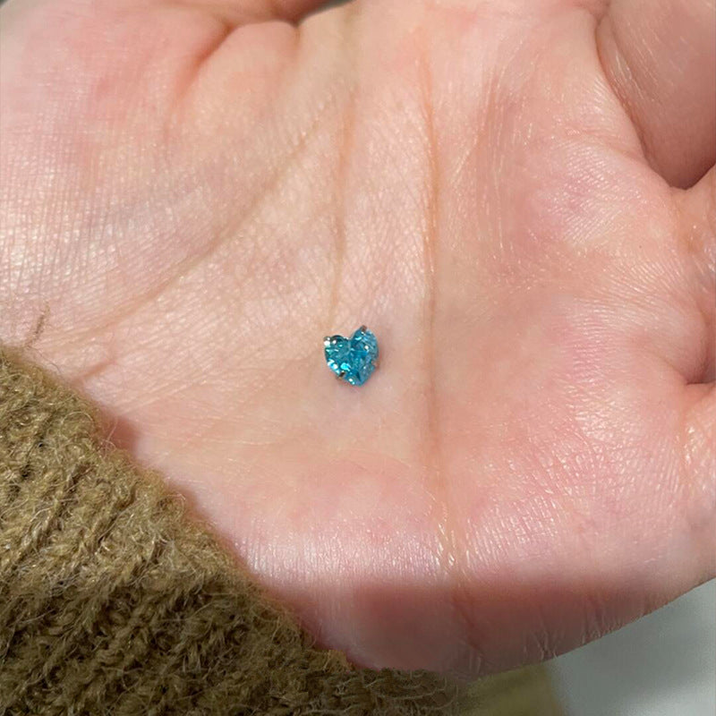 Wholesale Titanium Steel Blue Love Zircon Ear Nail Earring