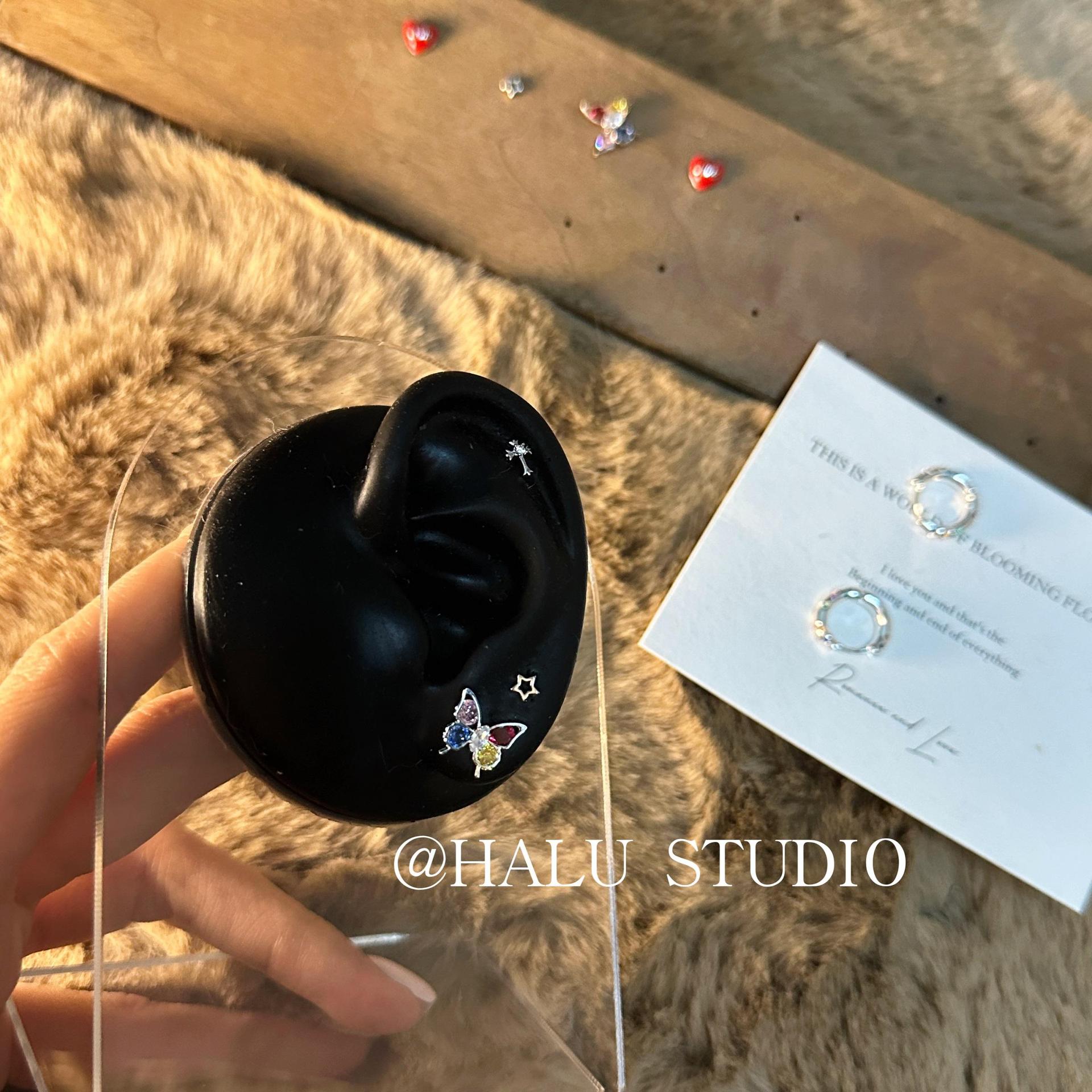 Wholesale Titanium Steel color earrings hollow stars holiday earrings