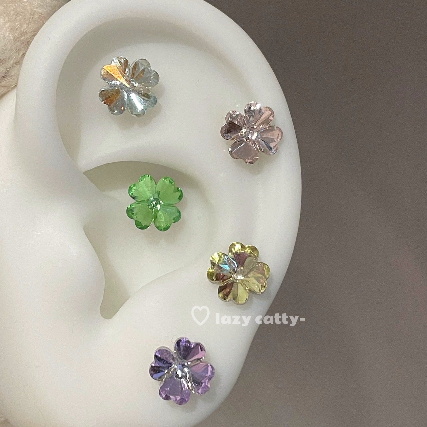 Wholesale Colorful four-leaf clover zircon ear bone studs titanium steel ear studs