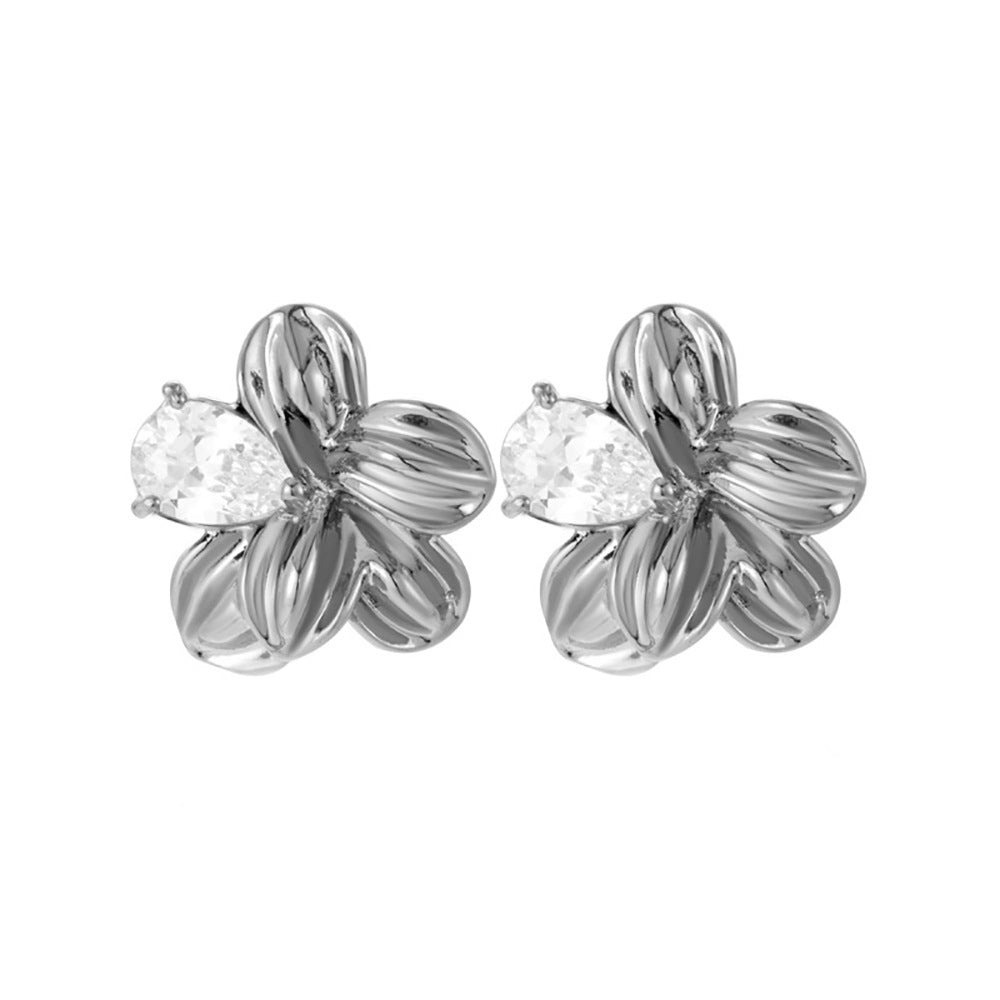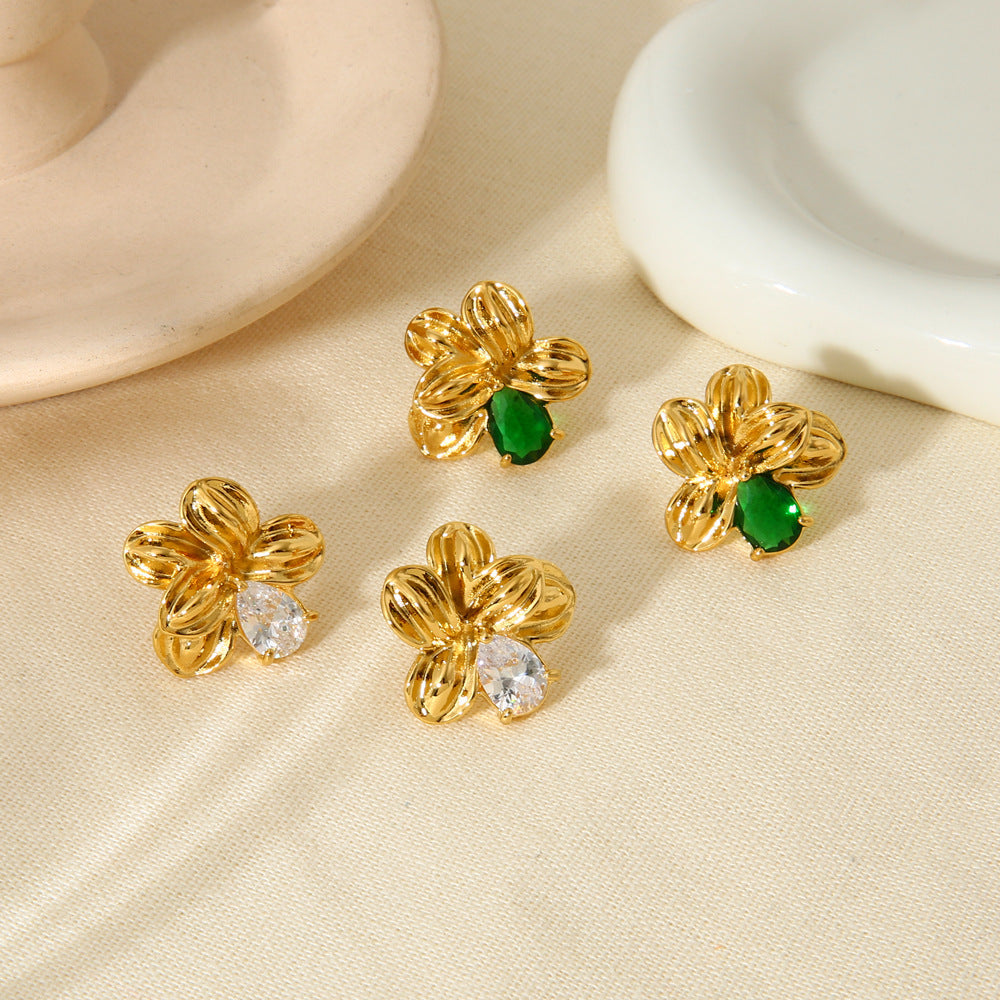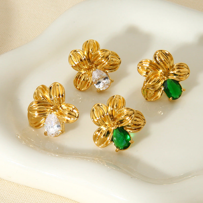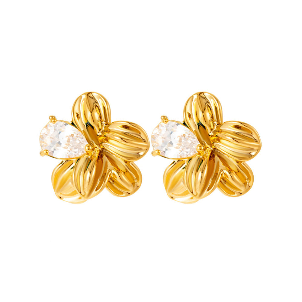 Großhandel Camellia Ohrringe Edelstahl Eingelegtes Zirkonblütenohrringe