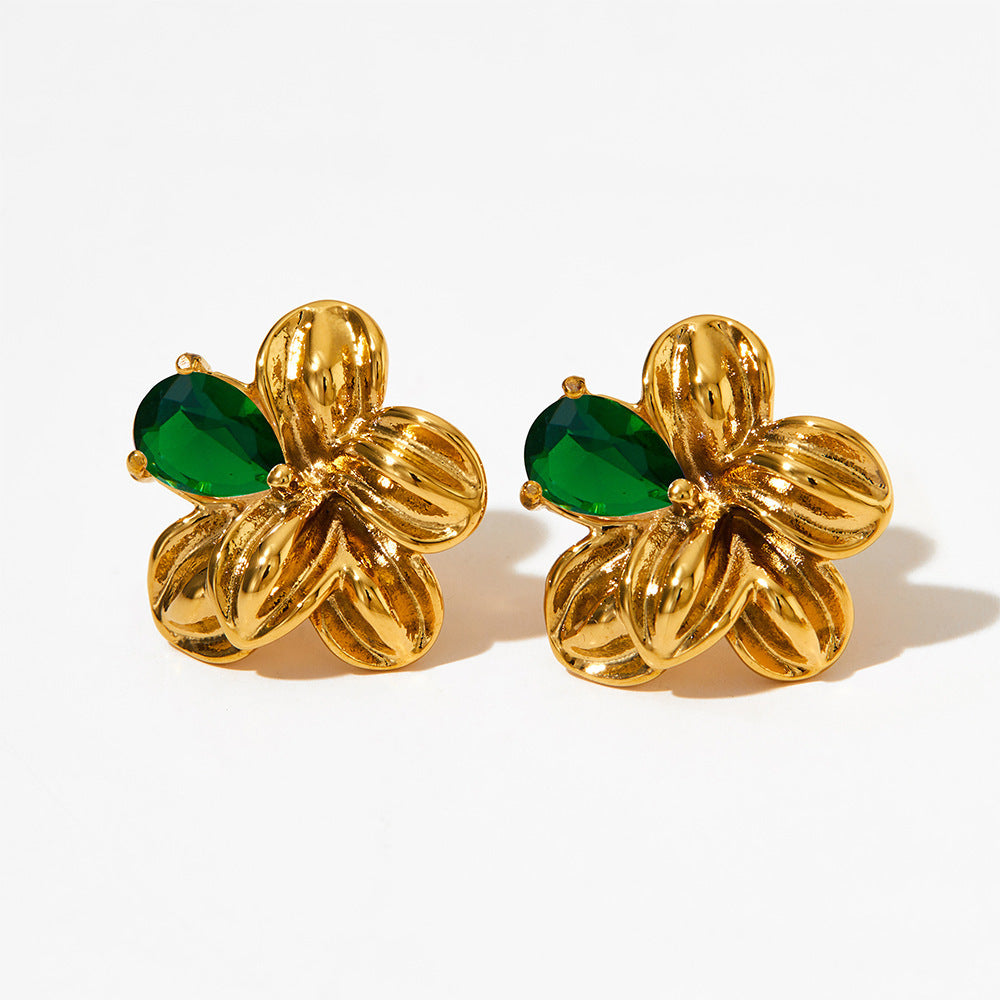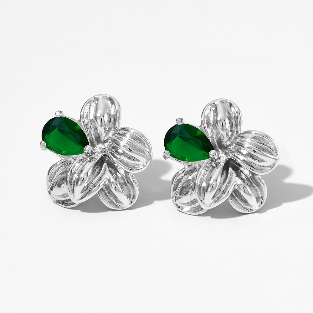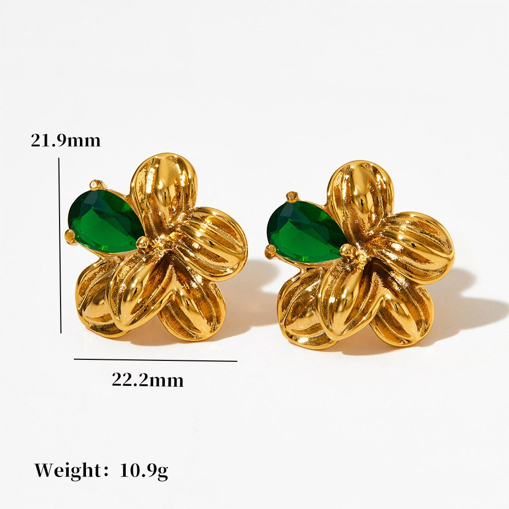 Großhandel Camellia Ohrringe Edelstahl Eingelegtes Zirkonblütenohrringe