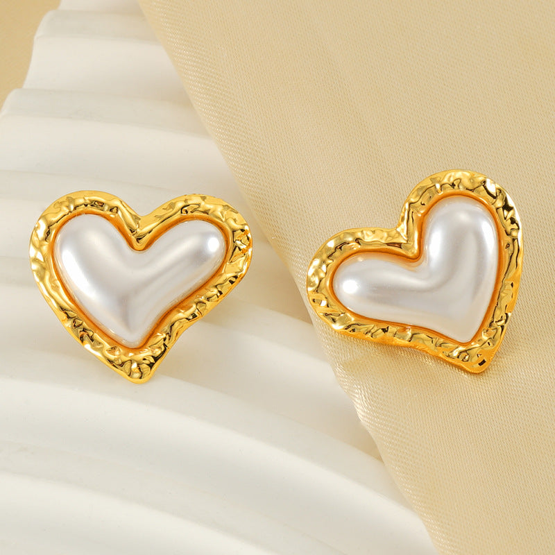 Wholesale Titanium Steel irregular fashion pearl earrings retro high sense love simple earrings