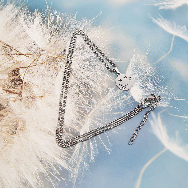 Wholesale Titanium Steel Irregular Smiley Face Pendant Cold Style Clavicle Chain