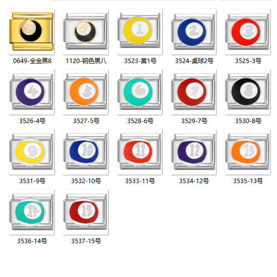 Wholesale Italian Charm Bracelet 9mm DIY Billiards Snooker Creative Stainless Steel Composable Bracelet