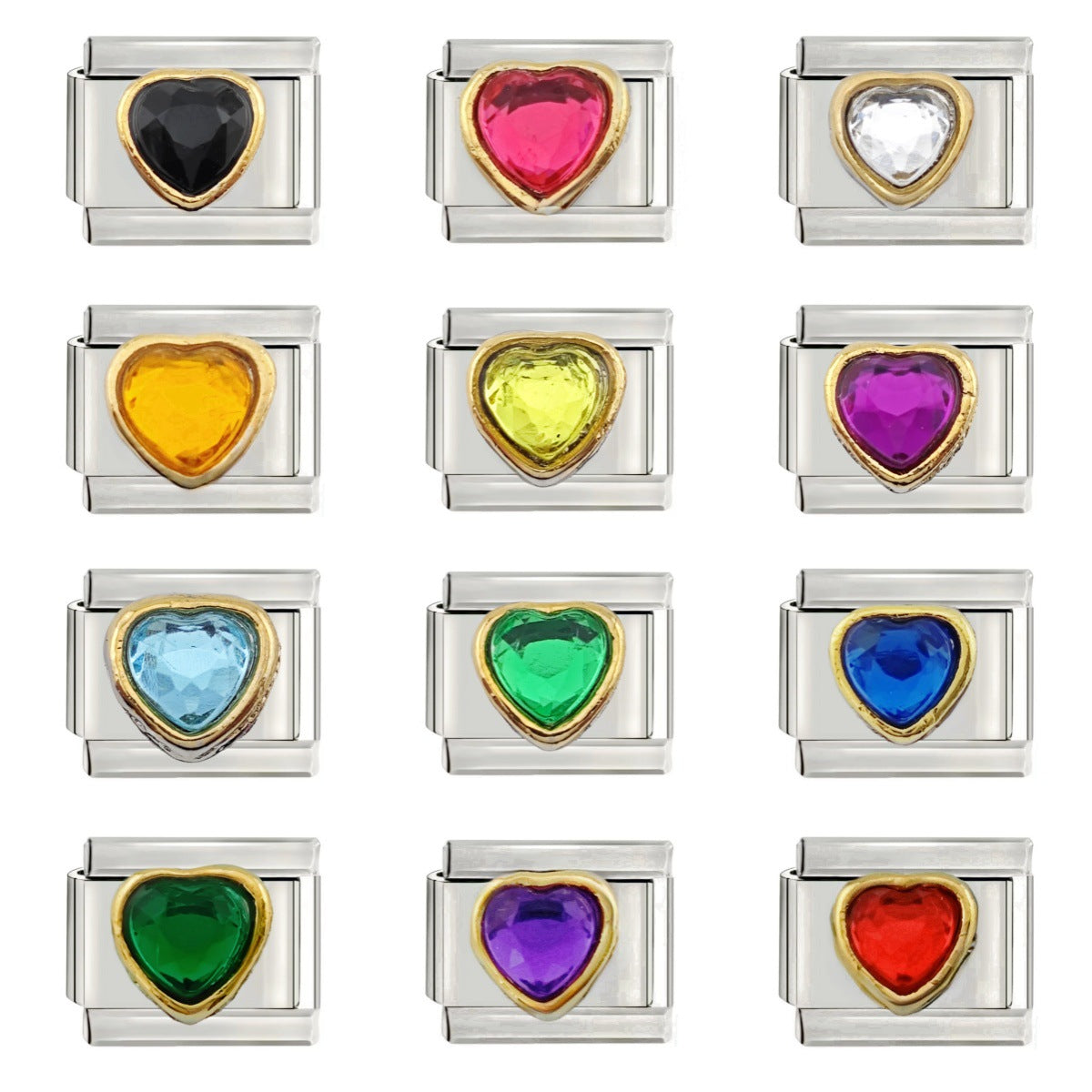 Wholesale Italian Charm Bracelet 9mm DIY Heart-Shaped Gemstone Series Creative Stainless Steel Composable Bracelet