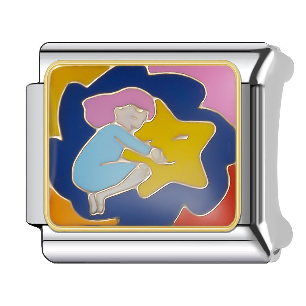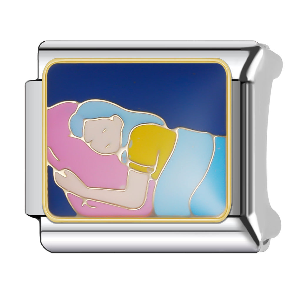 Wholesale Italian Charm Bracelet 9mm DIY Splicing Stainless Steel Goodnight Series Cartoon Composable Bracelet