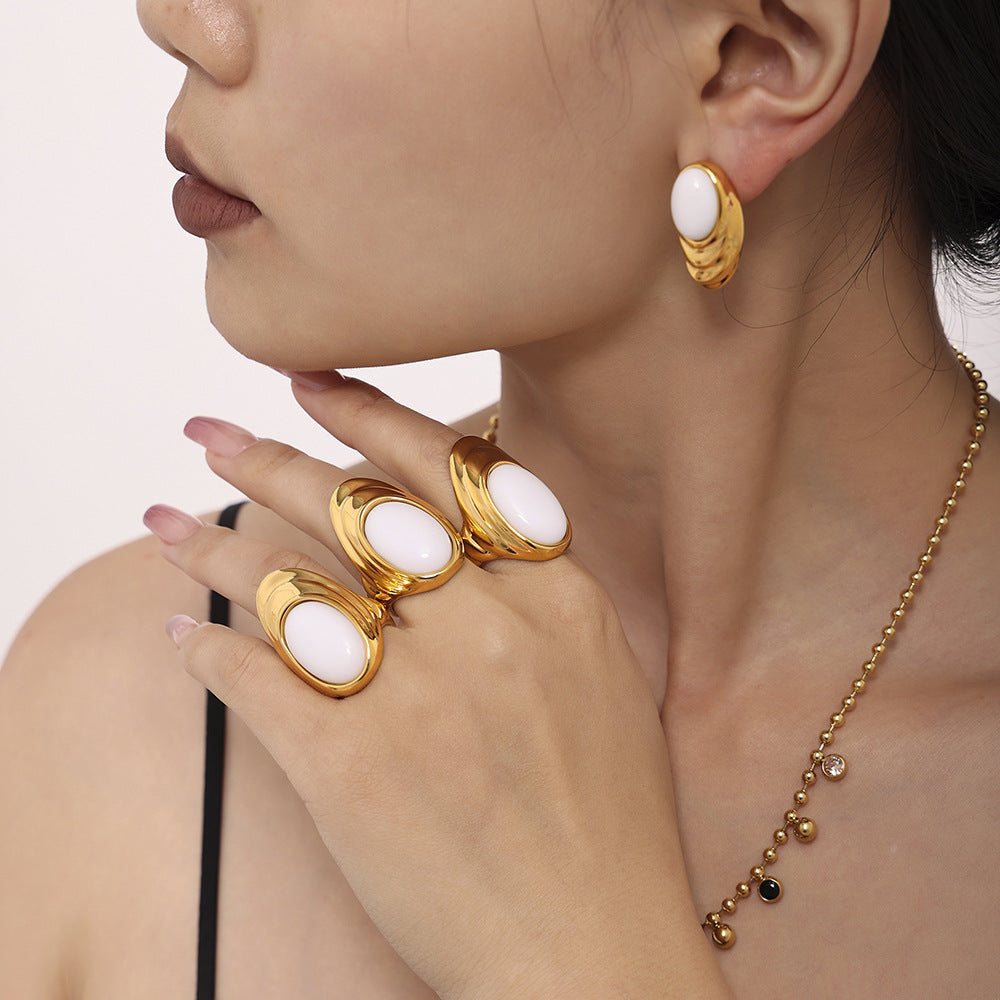 Wholesale Natural Opal Water Ripple Stainless Steel Earrings Ring