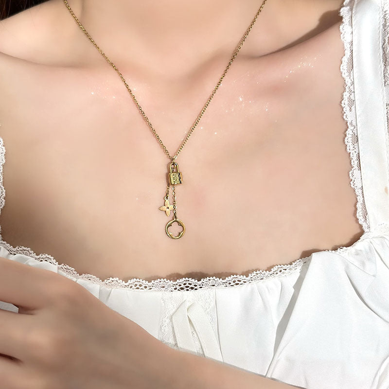 Wholesale Titanium Steel Simple Niche Design Four-leaf Clover Tassel Necklace