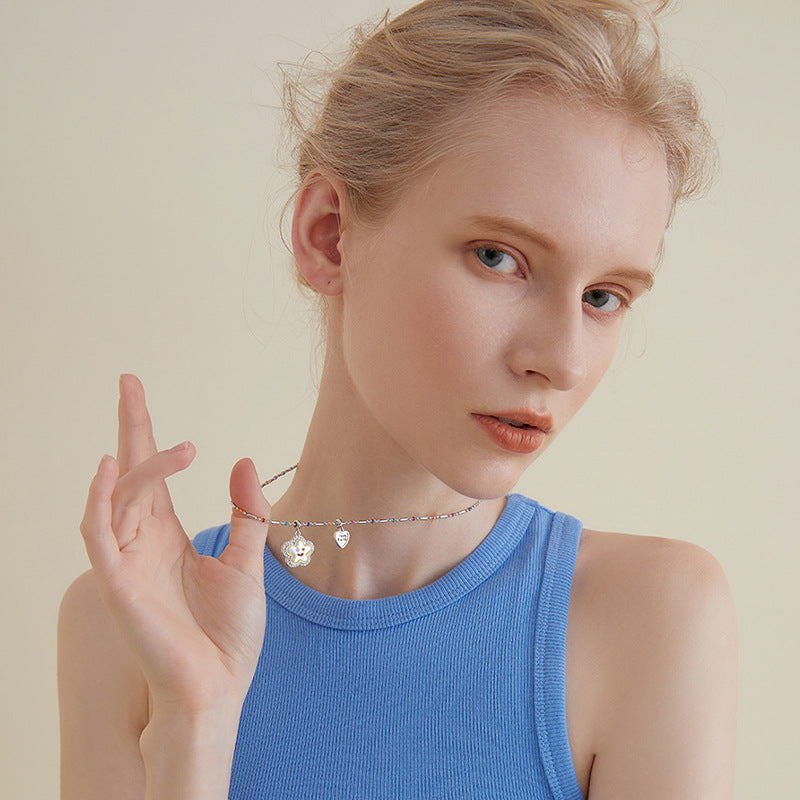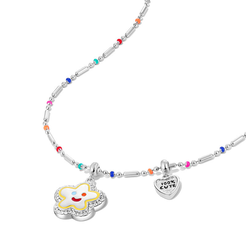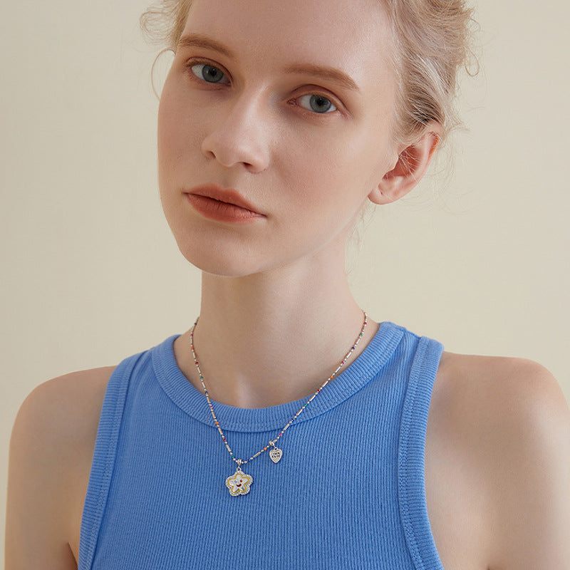 Wholesale Titanium Steel Smiley Flower Beaded Necklace Girls' Light Luxury Necklaces
