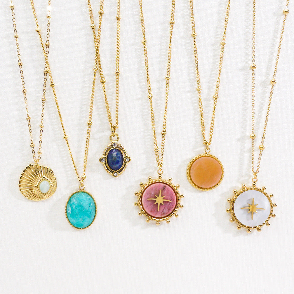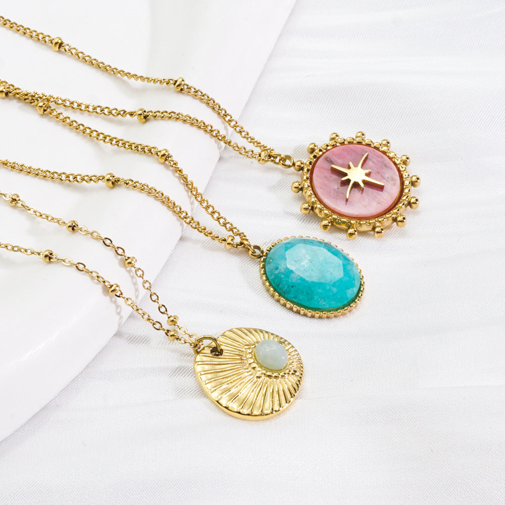 Wholesale Titanium Steel 316L Cut Face Natural Stone Mang Star 14K Gold Necklace