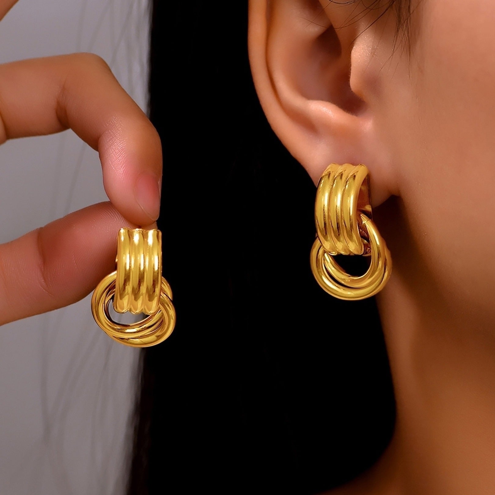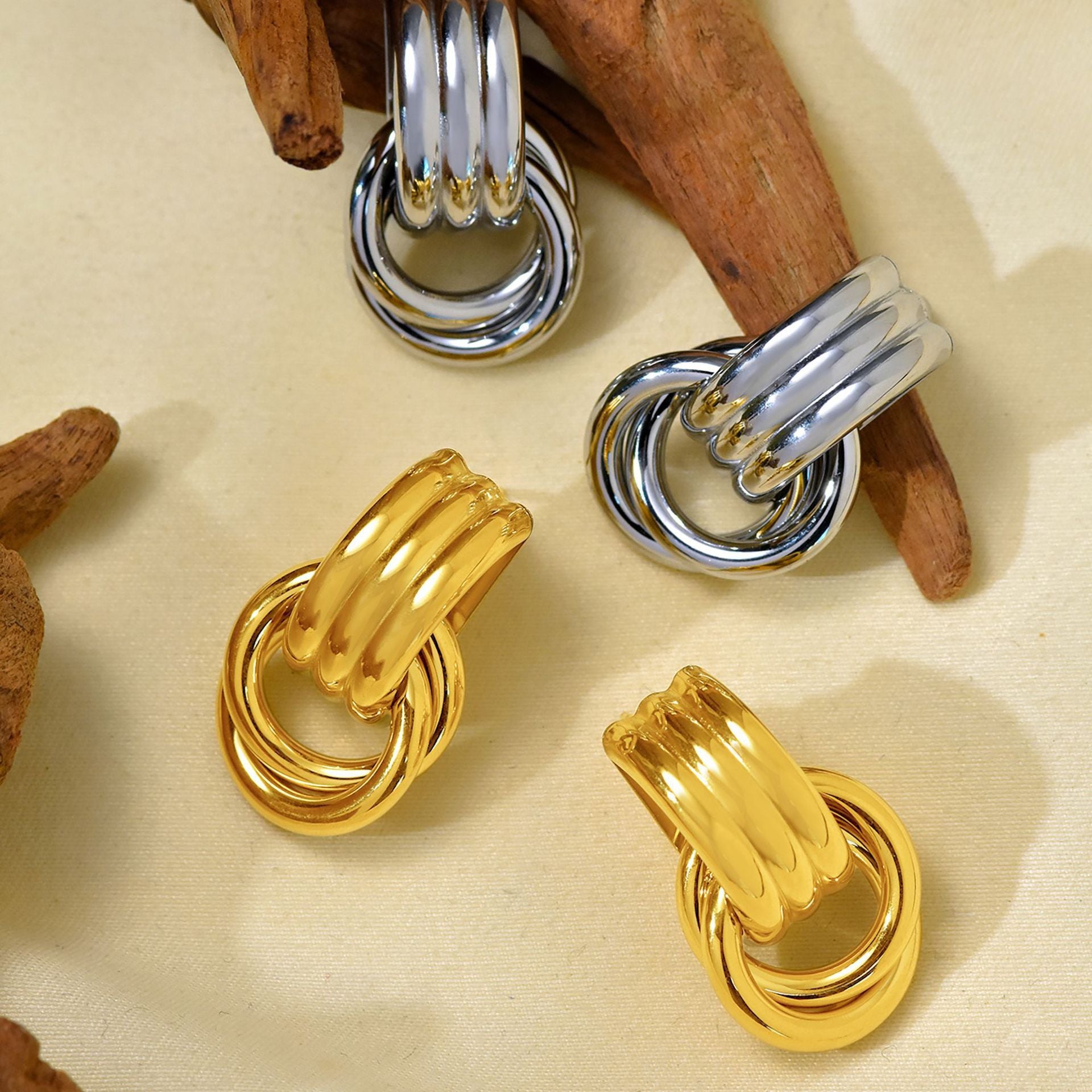 Wholesale Stainless Steel Double Ring C- Shaped Pattern High Glow Earrings