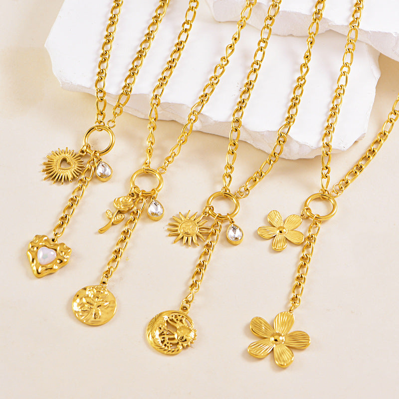 Wholesale stainless steel long tassel necklace round brand flower necklace