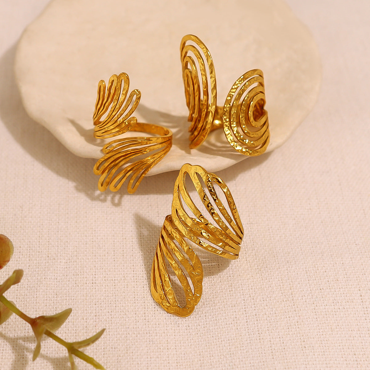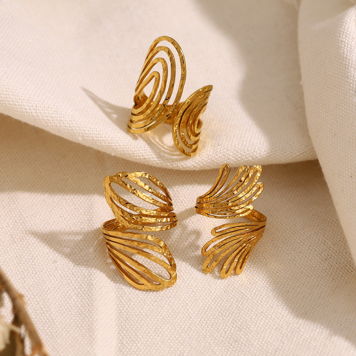 Wholesale stainless steel multi-layer hollow line ring geometric simple open finger ring suit