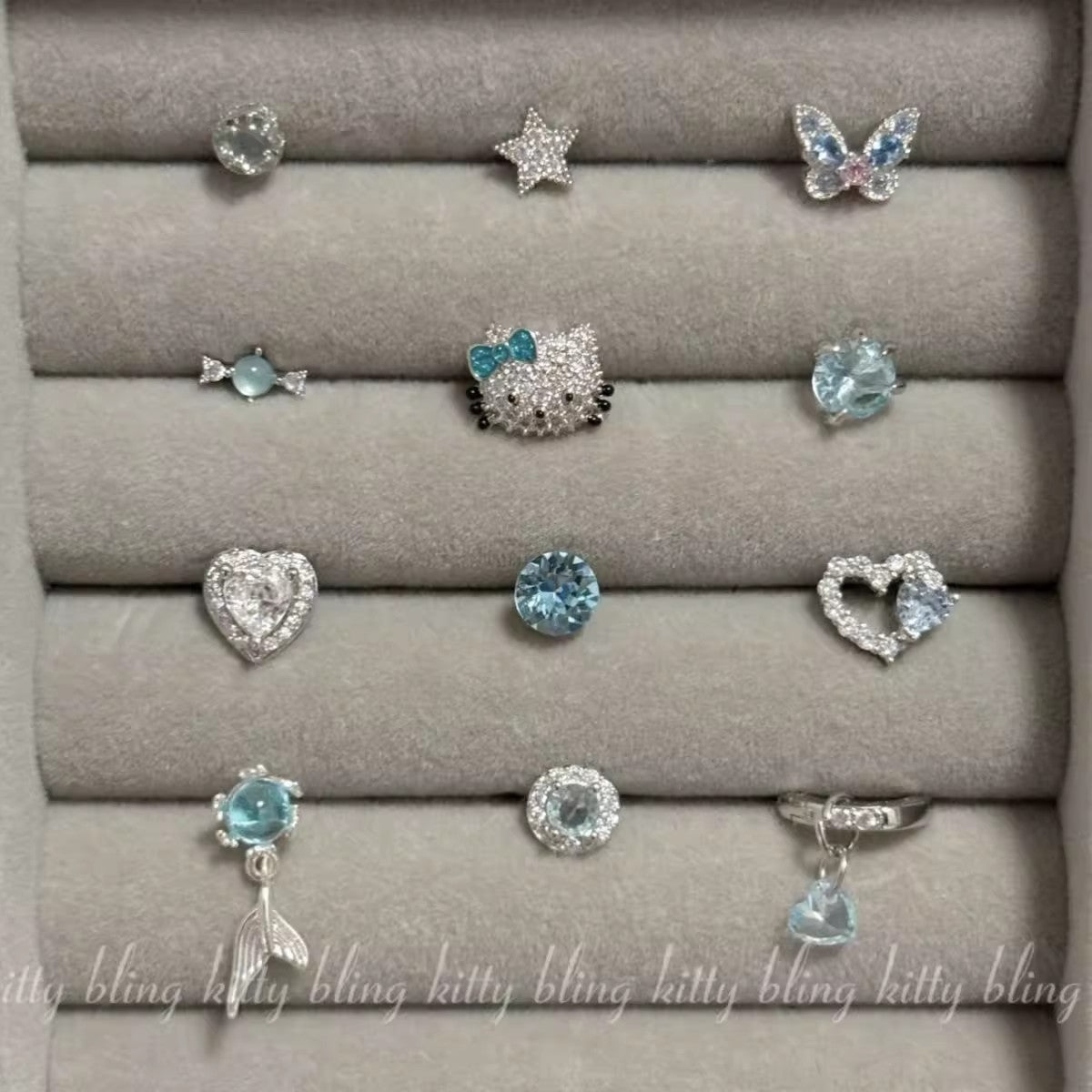 - E0380 no. 3 blue super flash full diamond two-color butterfly ear bone nail single
