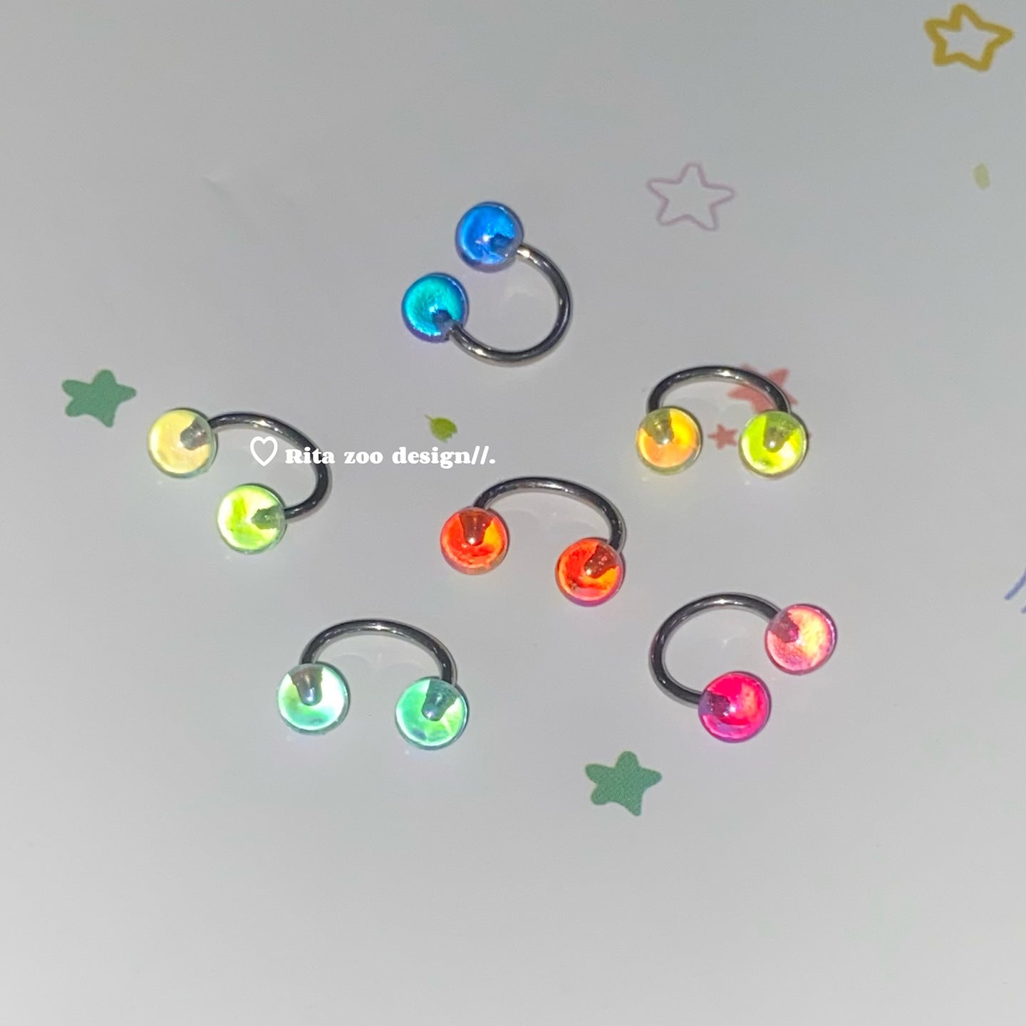 - E0650 green double ball horseshoe ring