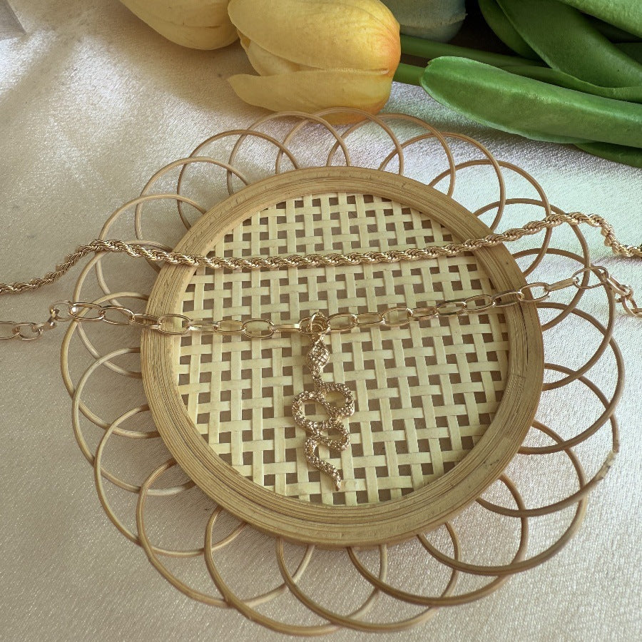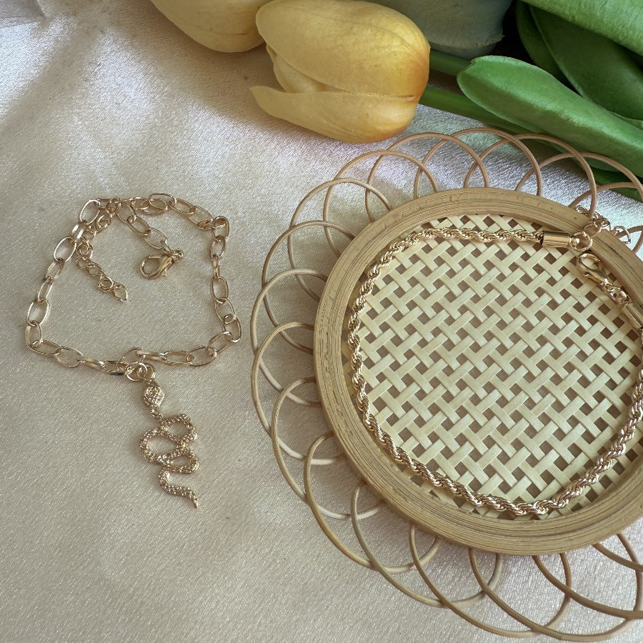Wholesale Anklet Gold Twisted Snake Cross Chain Double Layer Anklet